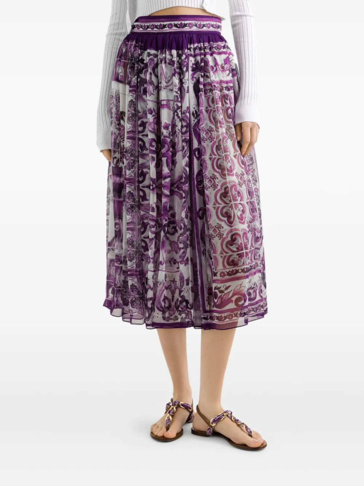 Dolce & Gabbana шелковая юбка миди, фиолетовый