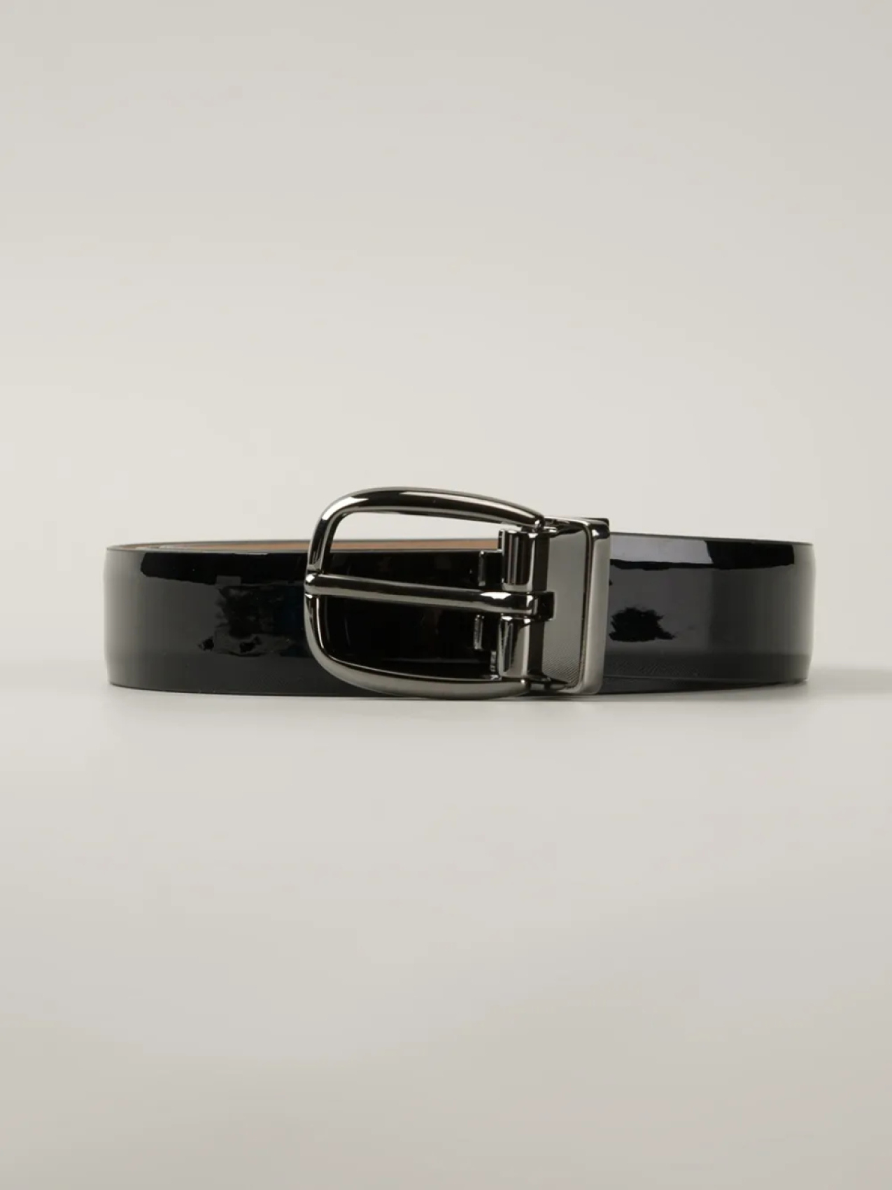 Чёрный классический ремень из лакированной кожи от Dolce & Gabbana. Застёжка с кольцом-D, регулируемый размер.