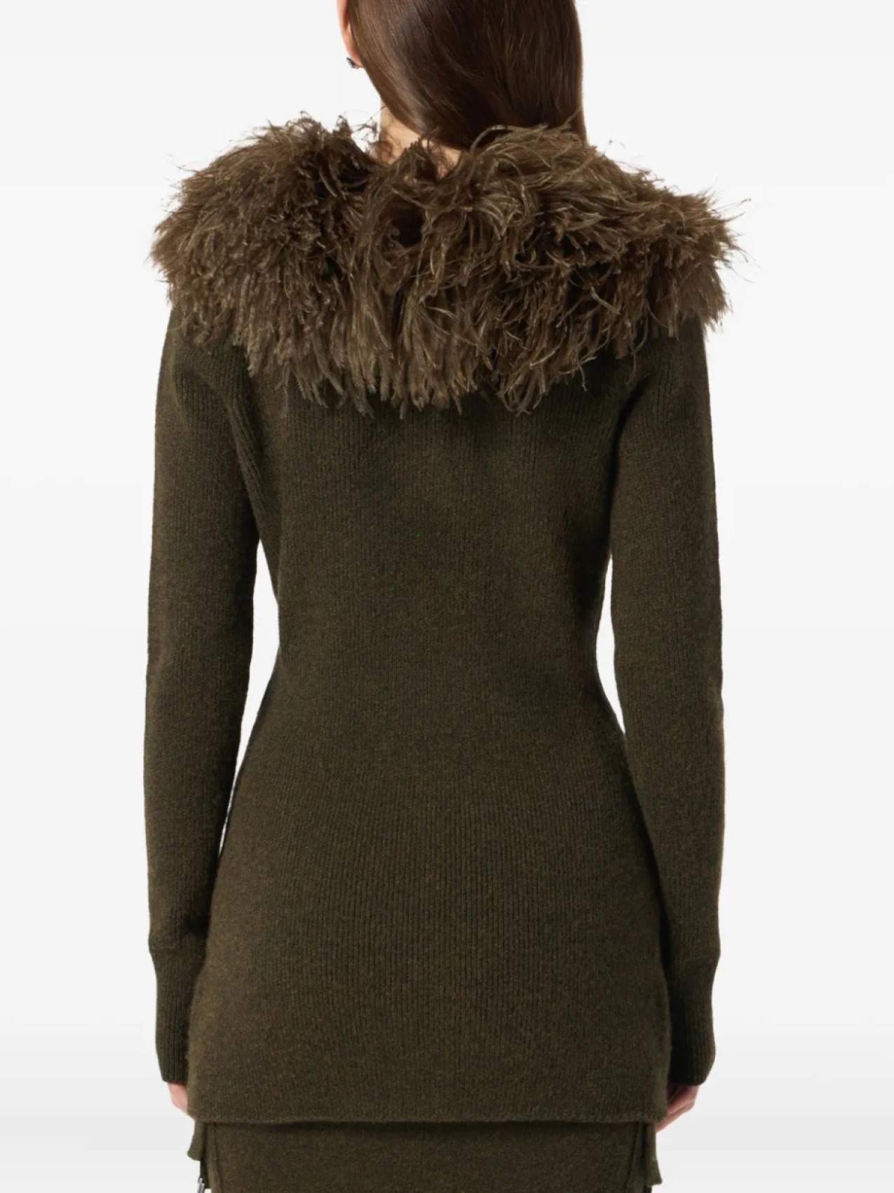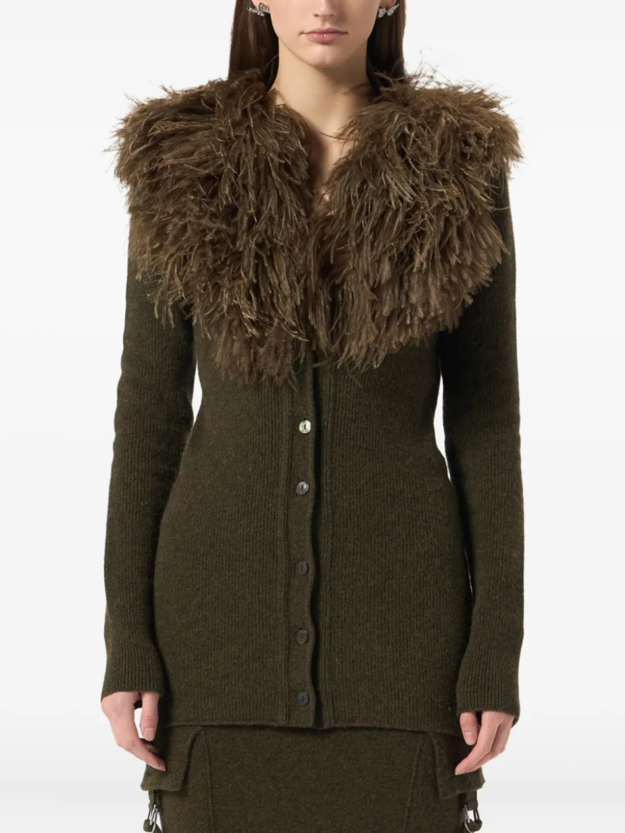 Шерстяной кардиган, украшенный перьями Blumarine, зеленый