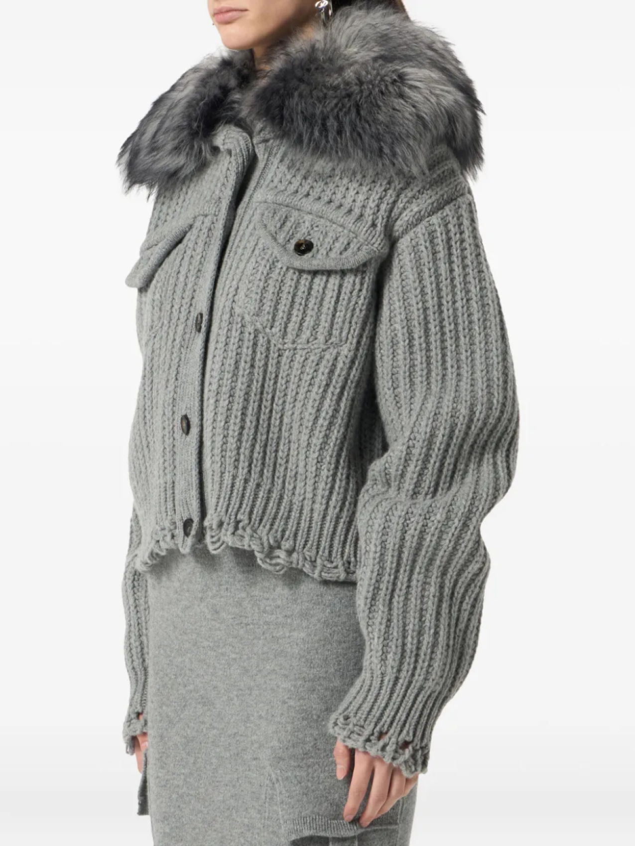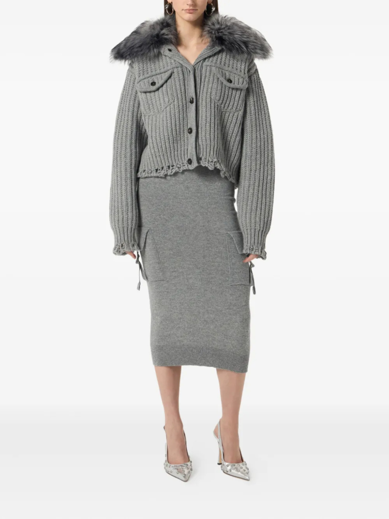 Blumarine укороченный кардиган в рубчик, серый 134 094₽