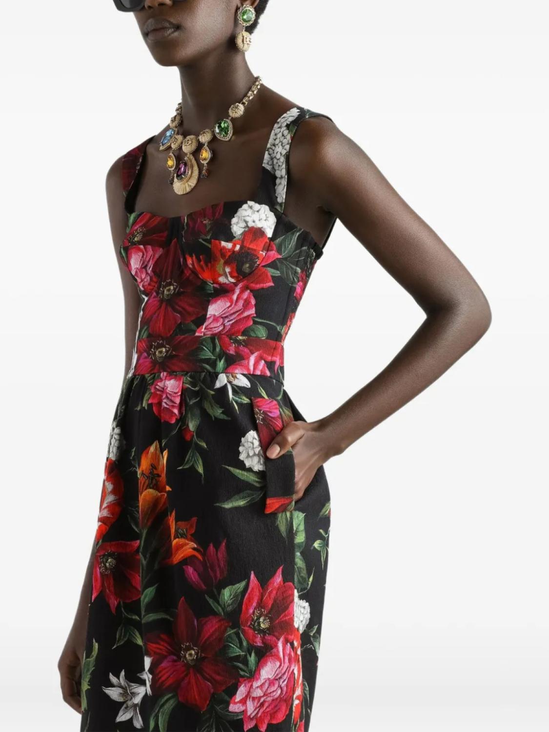Dolce & Gabbana платье мини с цветочным принтом, черный