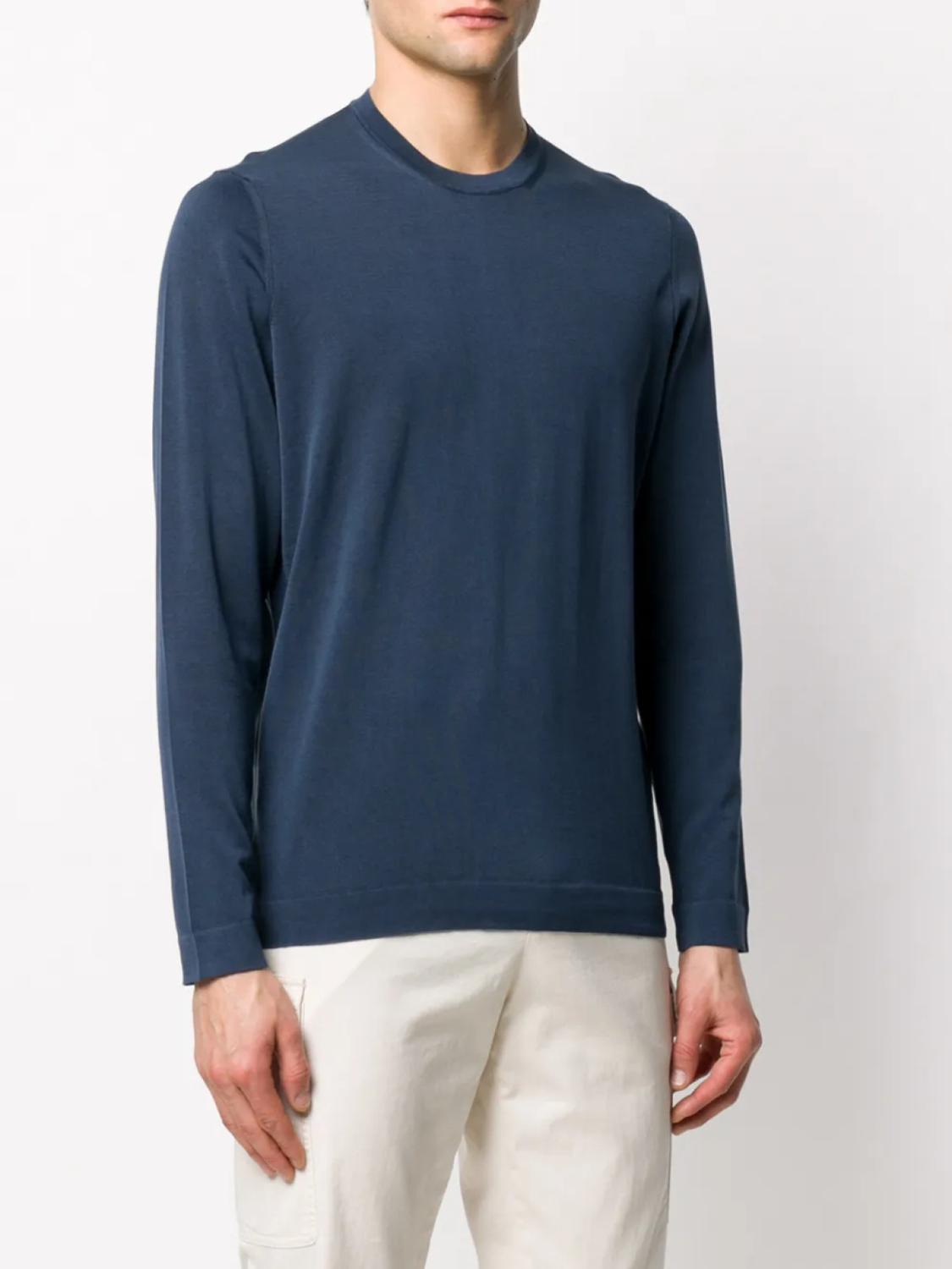 Джемпер с круглым вырезом от Drumohr. Круглый вырез под горло в рубчик, длинные рукава и подол и манжеты в рубчик.