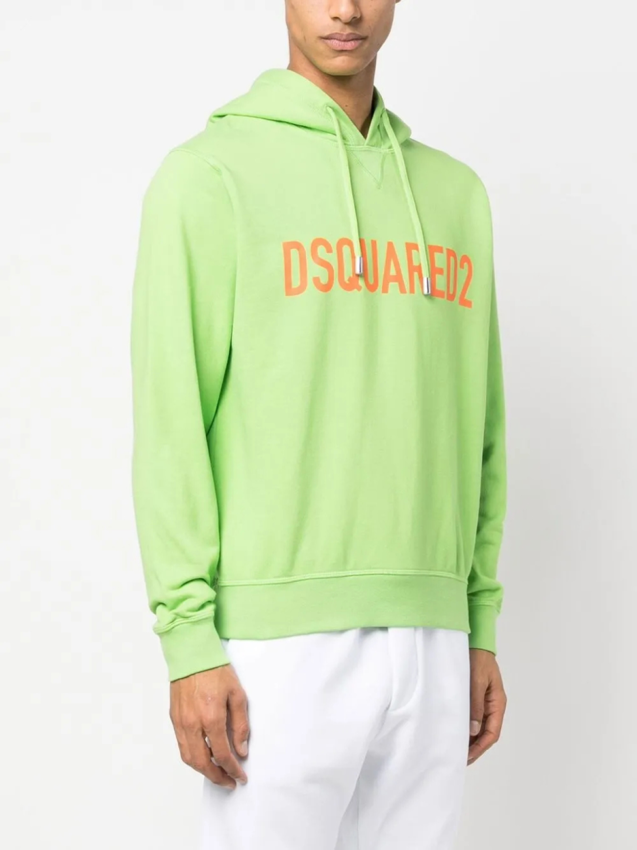 Салатовый, мандариново-оранжевый, хлопок, принт с логотипом на груди, затягивающийся на шнурок капюшон, длинные рукава, эластичные манжеты и эластичный подол.
