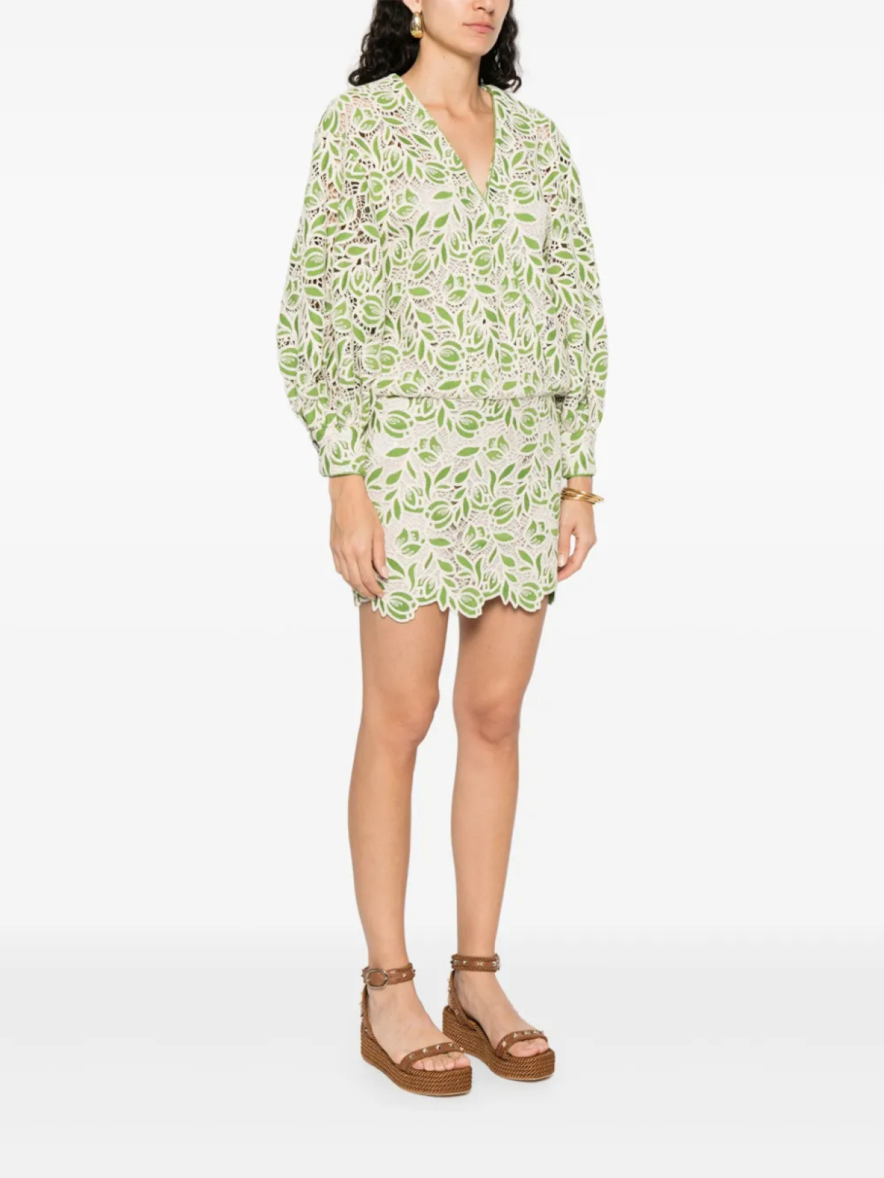 LUISA SPAGNOLI платье мини в технике кроше, зеленый
