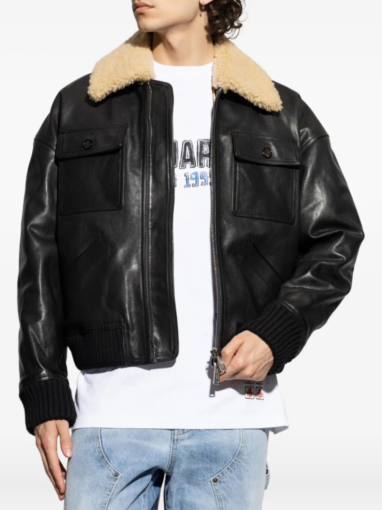 Кожаная куртка-бомбер DSQUARED2, черный