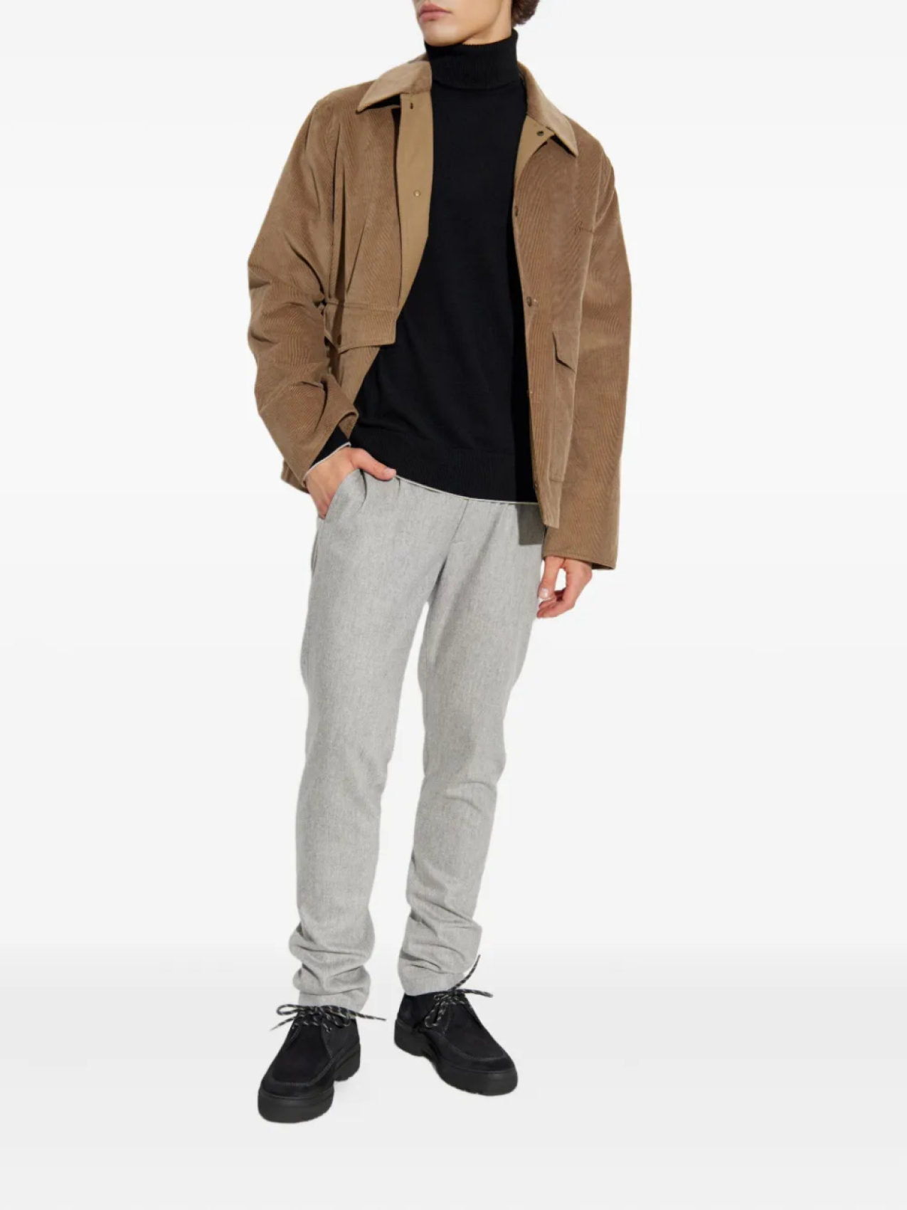 Черная ребристая отделка, длинные рукава, приталенные манжеты
