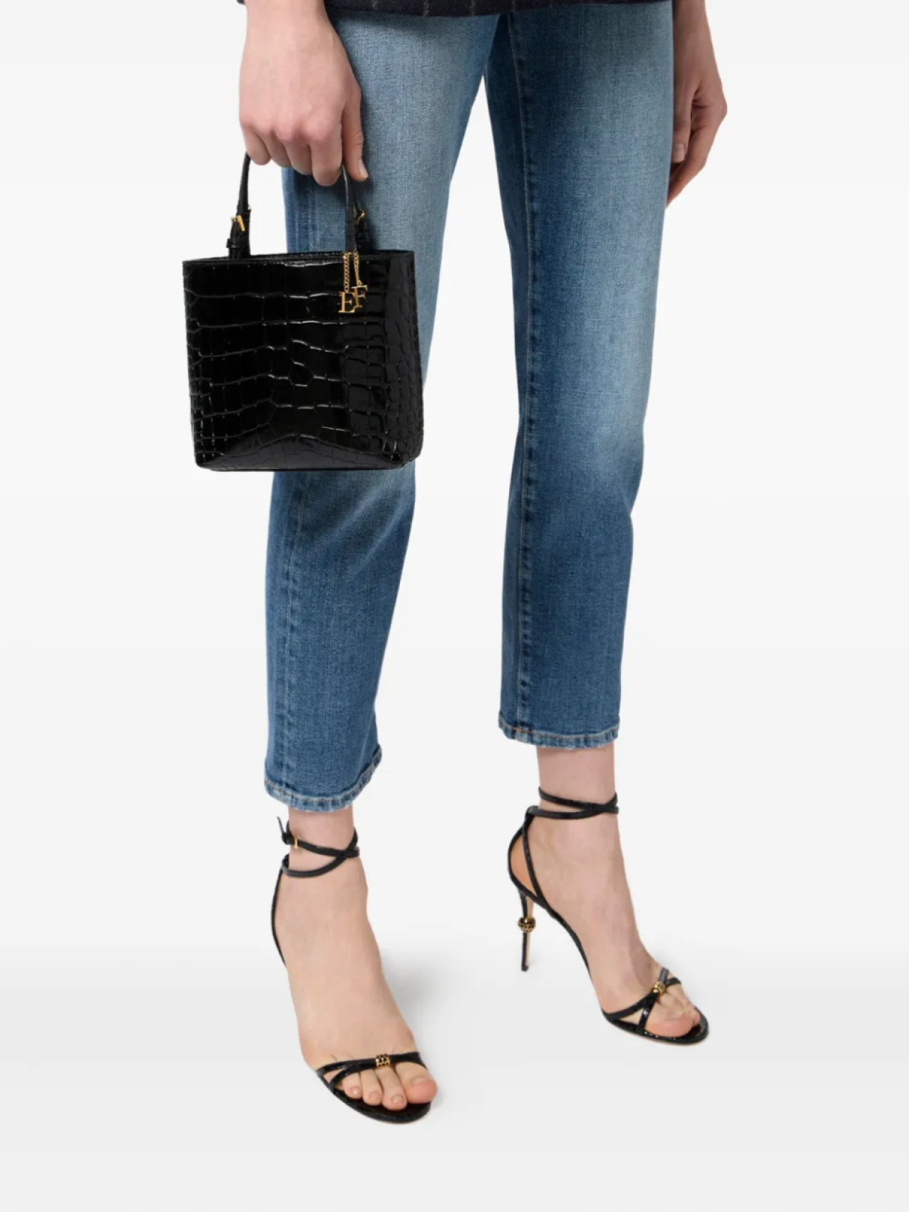 Мини-сумка с тиснением под крокодила Elisabetta Franchi, черный