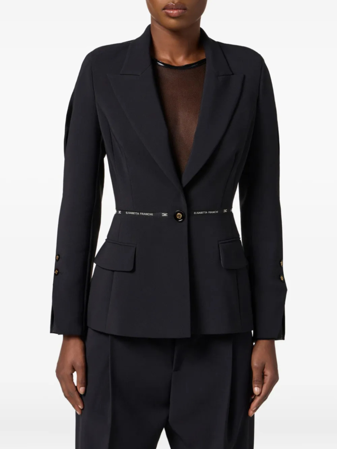 Структурированный блейзер с поясом Elisabetta Franchi, черный