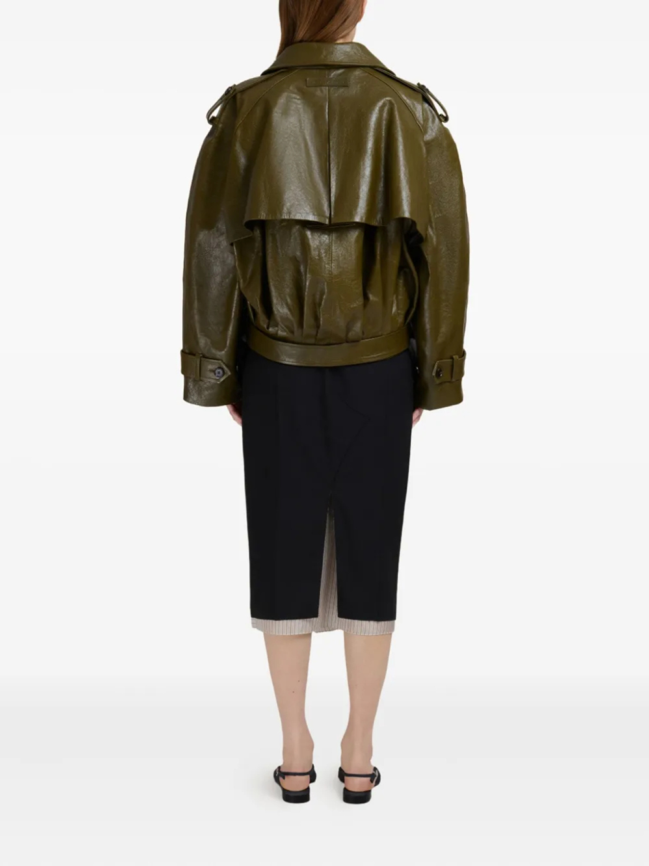 Укороченная кожаная куртка Marni, зеленый 213 393₽