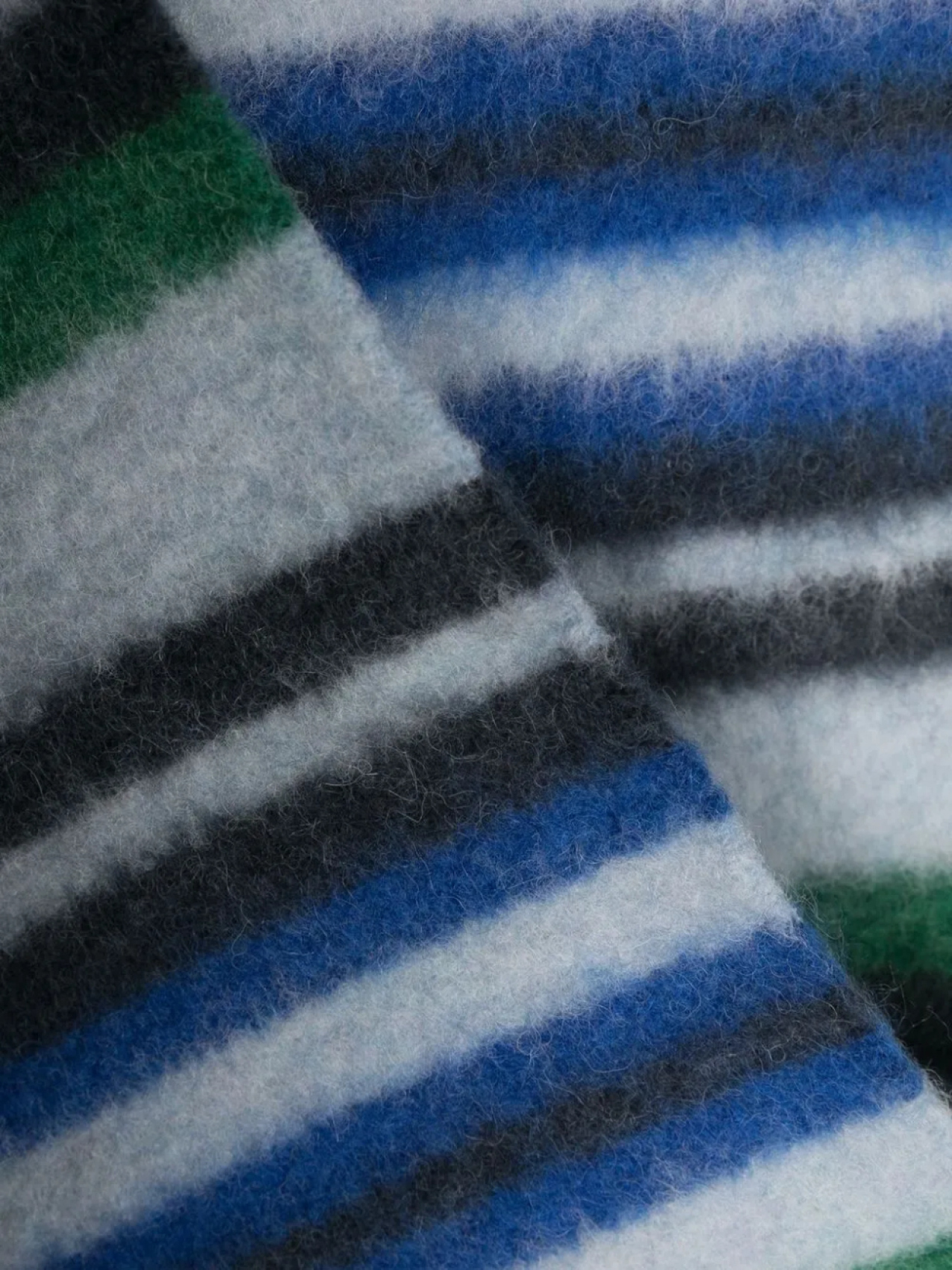 Зеленый, черный, смесовая шерсть альпаки, трикотажный материал, матовый эффект, принт в стиле колор-блок, нашивка с логотипом спереди и края с бахромой.