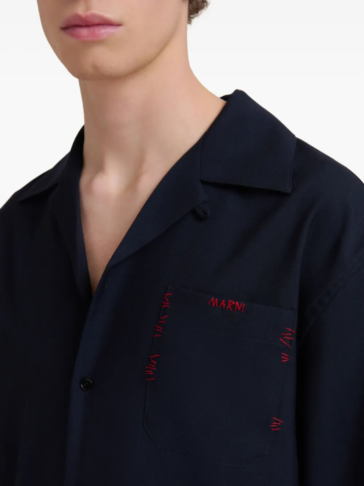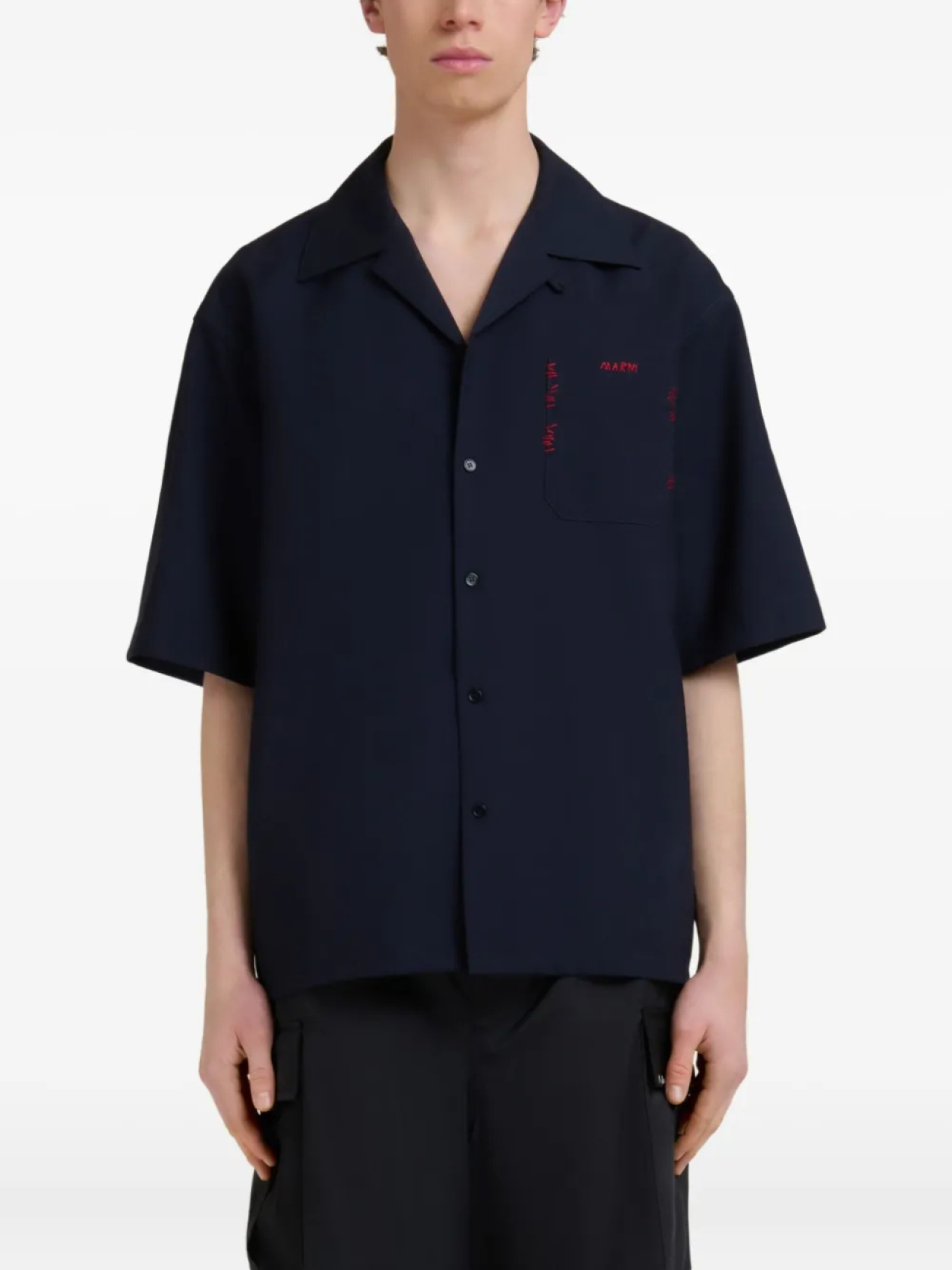 Marni рубашка с короткими рукавами и вышивкой, синий