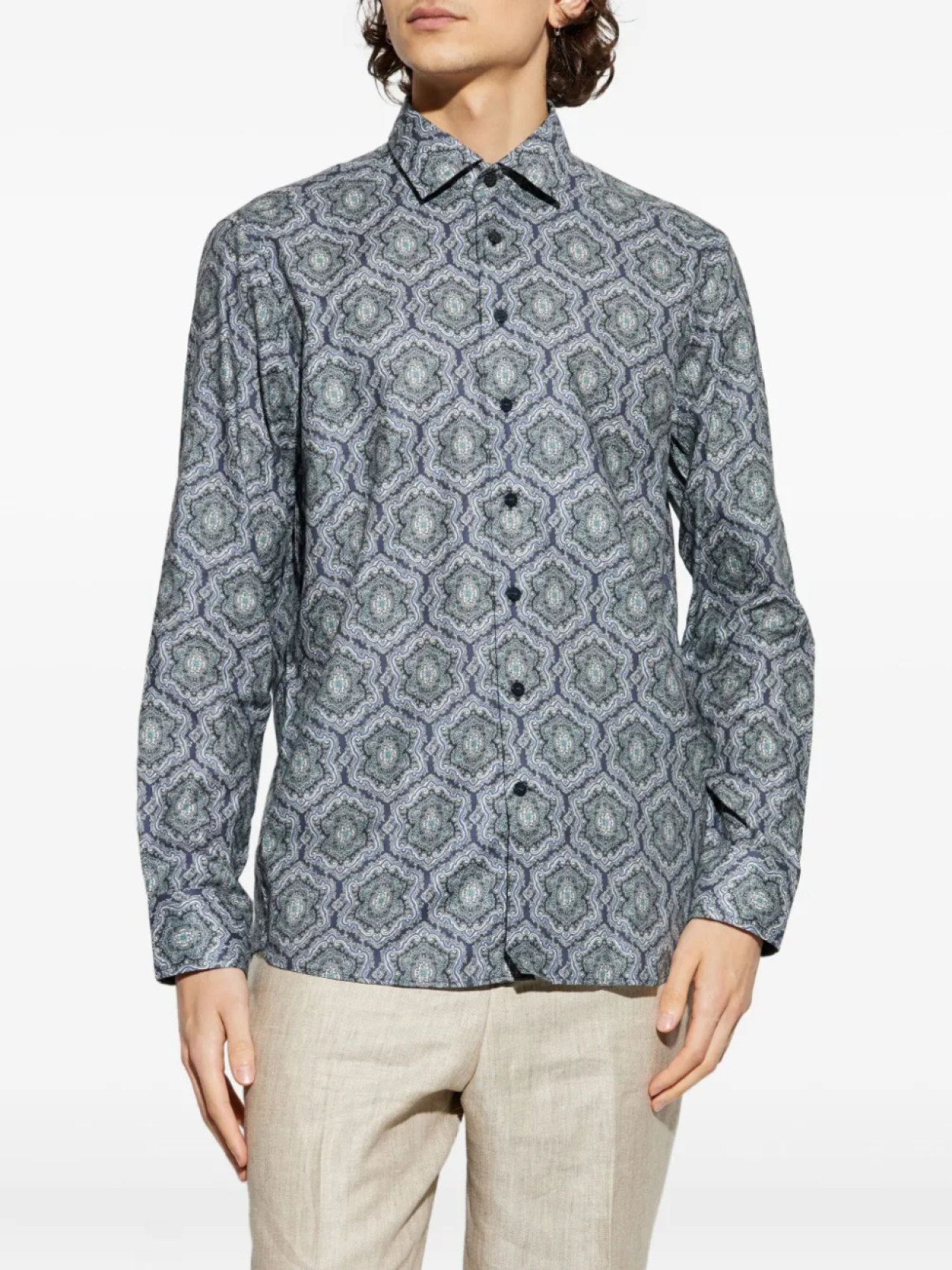 Рубашка с длинными рукавами и геометрическим принтом ETRO, синий 48 109₽