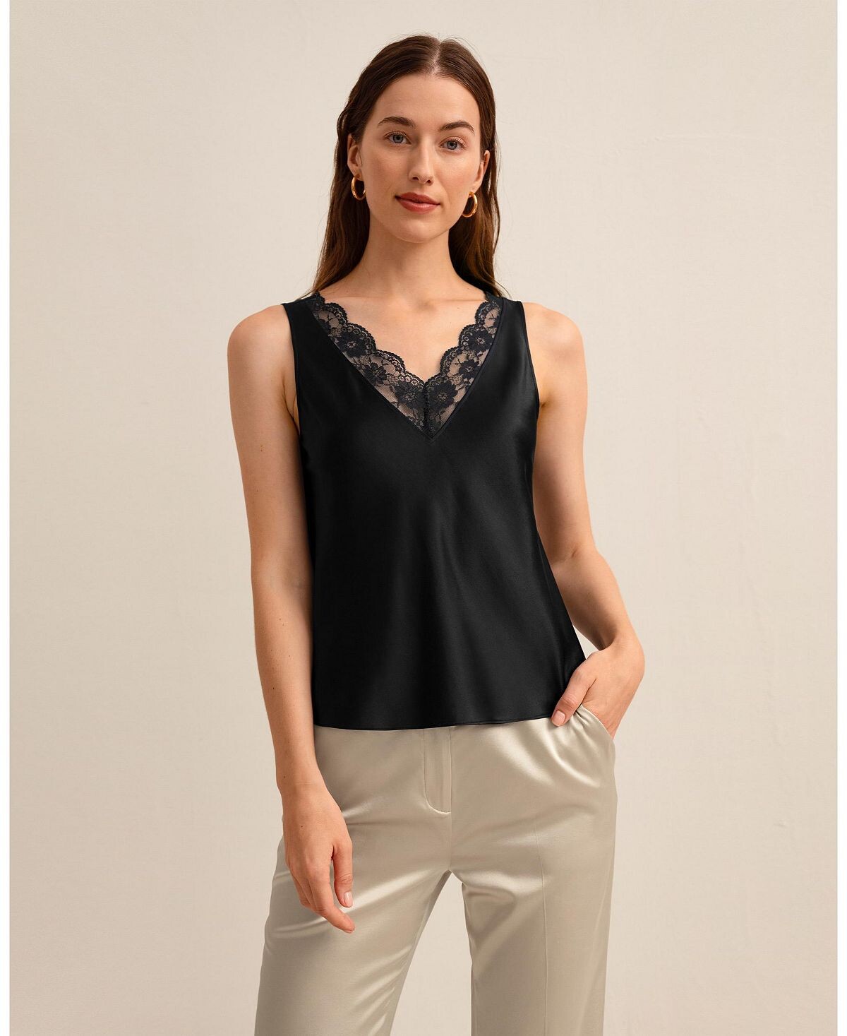Представляем вашему вниманию новую незаменимую шелковую майку Armeria Lace Tank. Шелк 22 Momme Charmeuse невероятно гладкий и роскошный, а А-образный силуэт женственный и привлекательный, с нежным кружевом вдоль V-образного выреза.