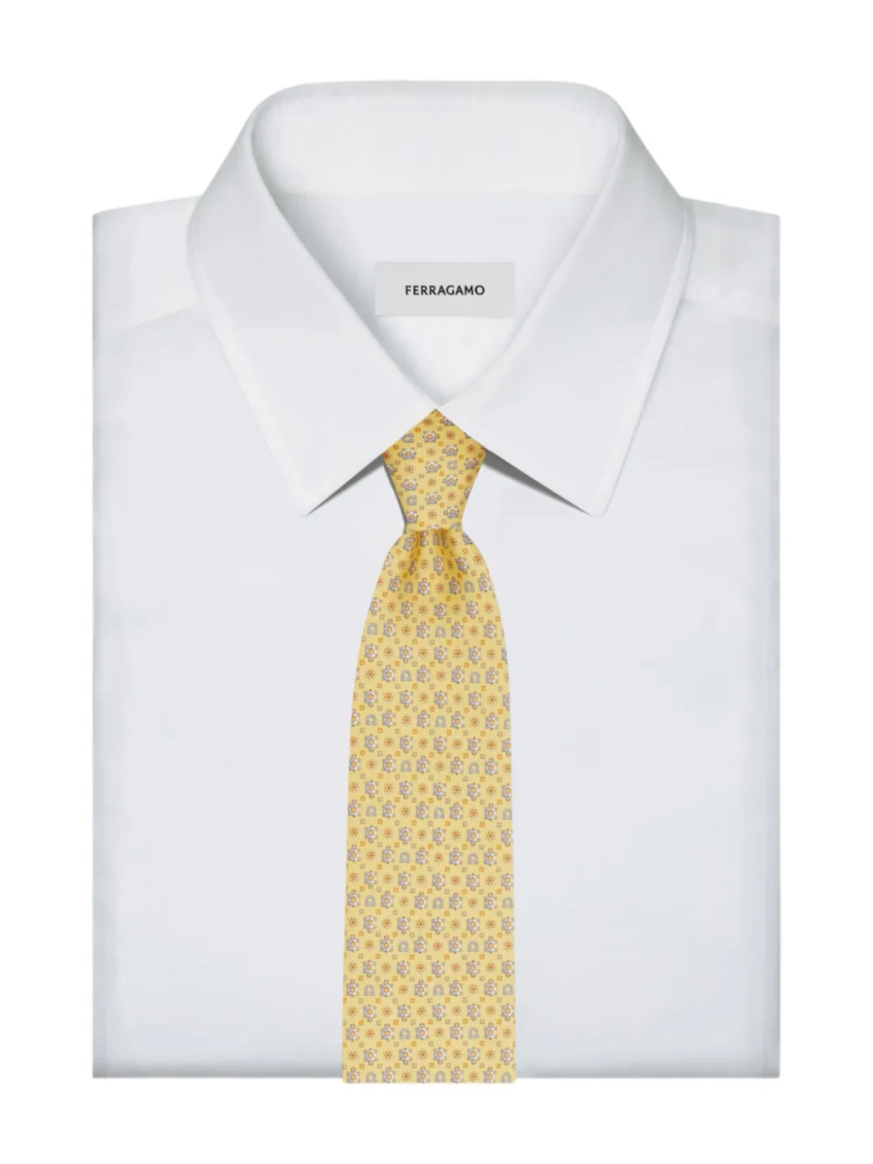 Шелковый галстук с черепаховым принтом Ferragamo, желтый 27 024₽