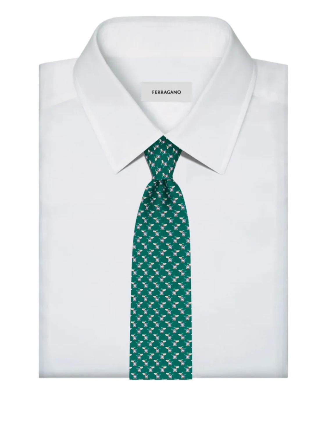 Узорчатый шелковый галстук Ferragamo, зеленый