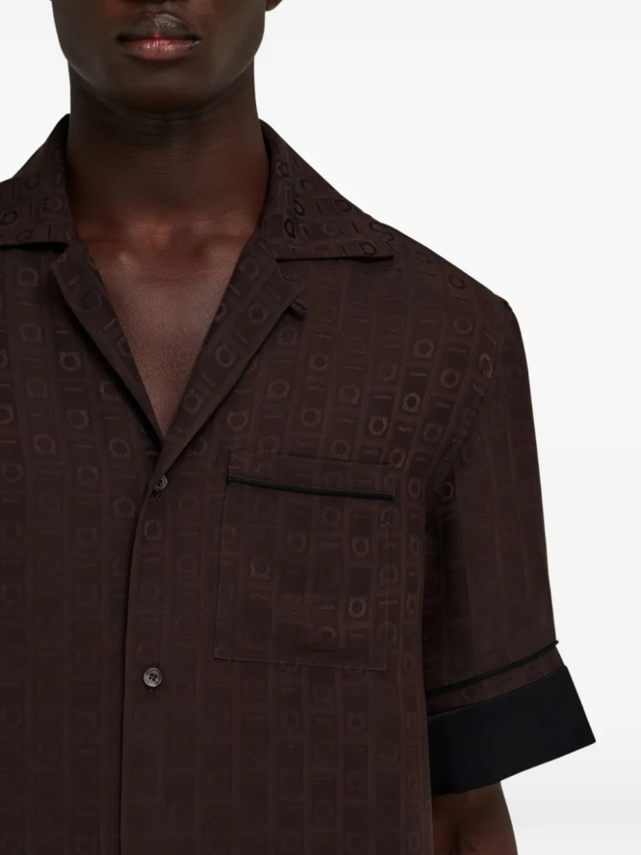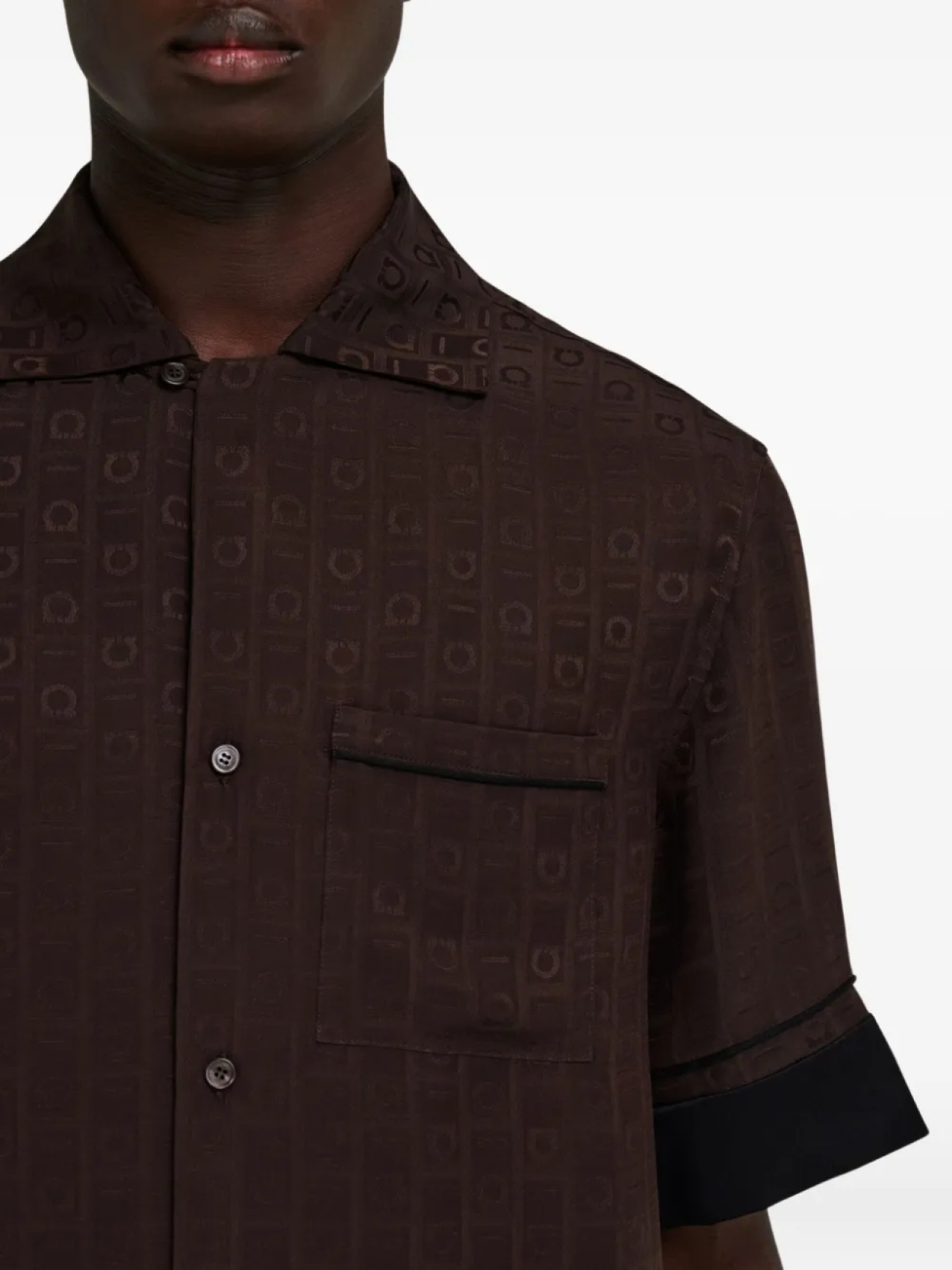 Ferragamo рубашка с короткими рукавами и монограммой, коричневый