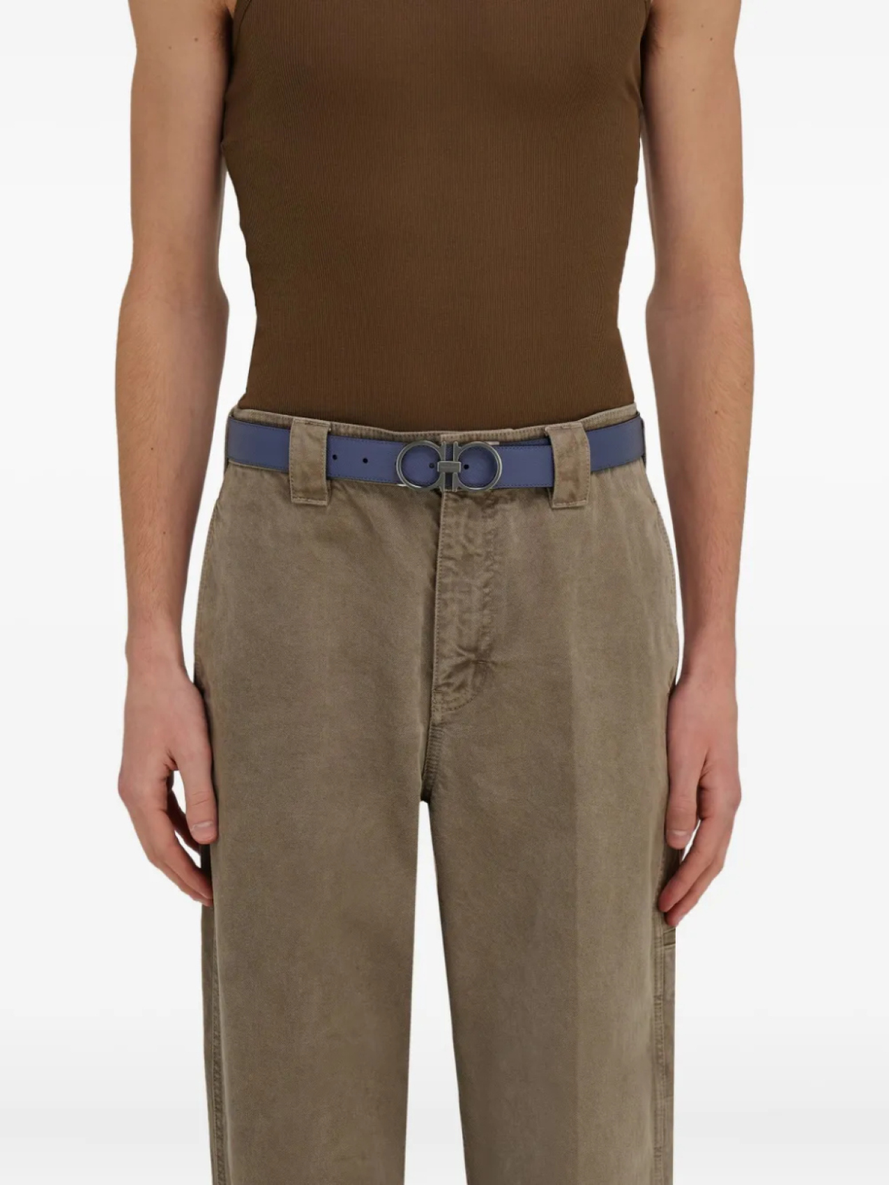 Ferragamo двусторонний ремень с декором Gancini, серый