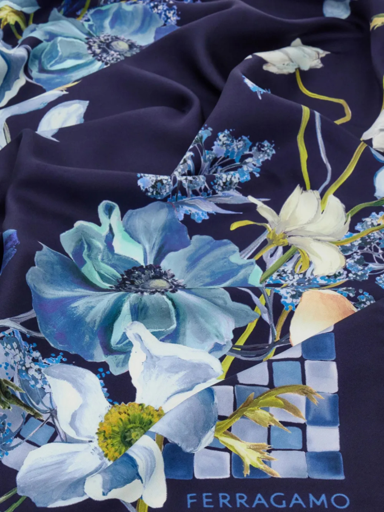 Ferragamo шелковый платок с принтом Fiori, синий