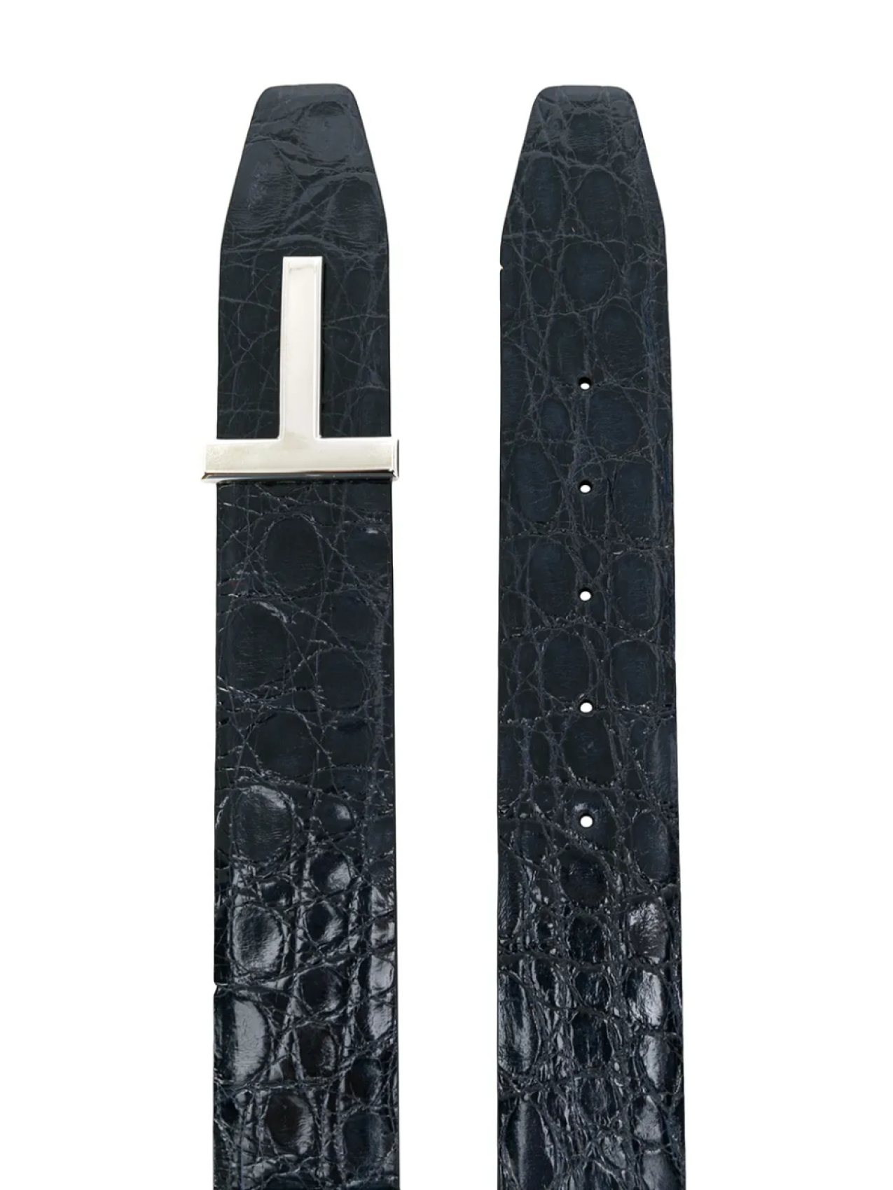 Ремень с Т-образной пряжкой от Tom Ford. Регулируемый размер и серебристая фурнитура. Цвет: синий. Пожалуйста, обратите внимание, если вы покупаете это изделие из европейского бутика, то вы не можете заказать его на адрес, находящийся вне территории стран ЕС. Если вы заказываете это изделие из северо-американского бутика, то товар не может быть отправлен за пределы Северной Америки. .