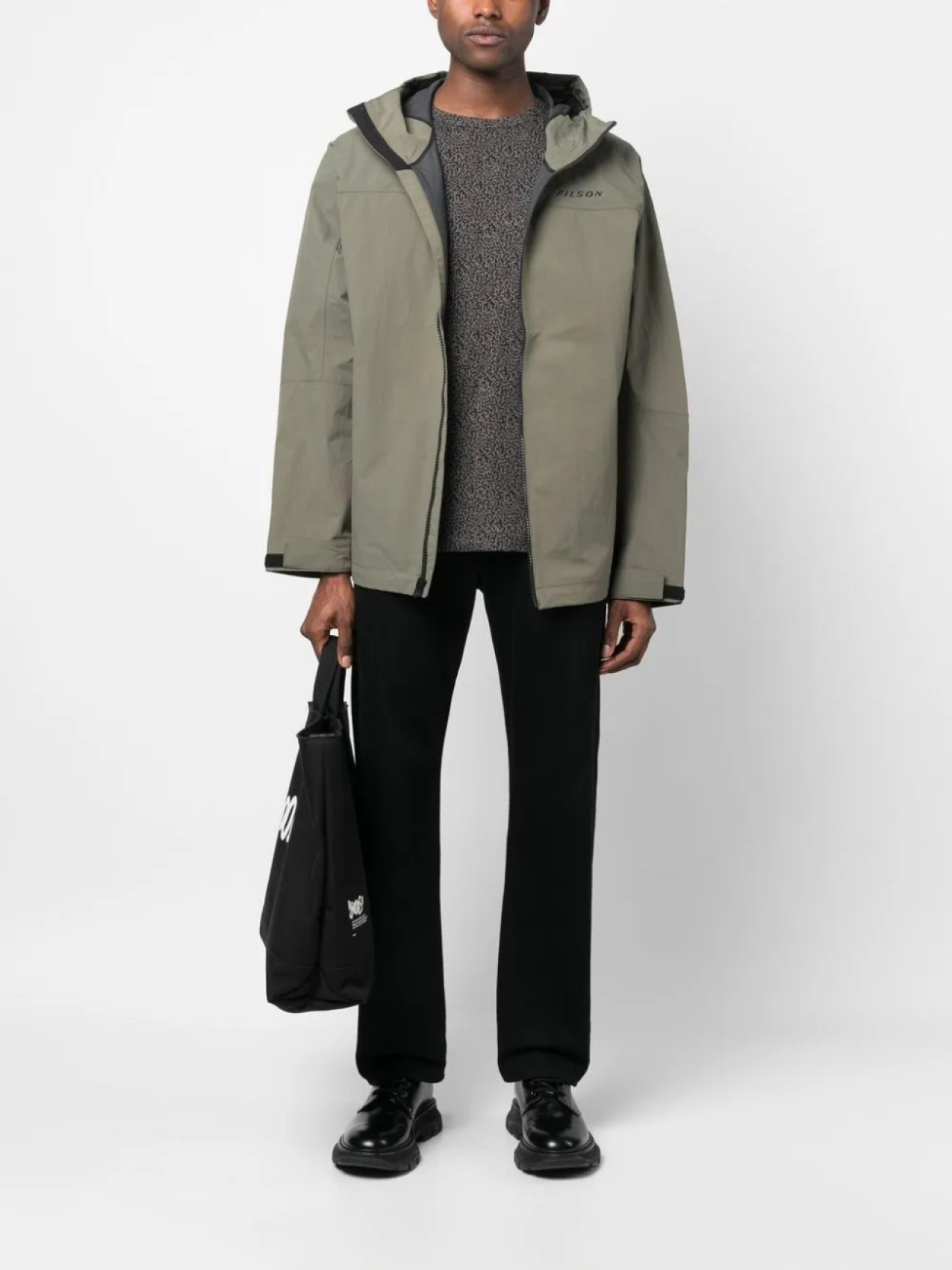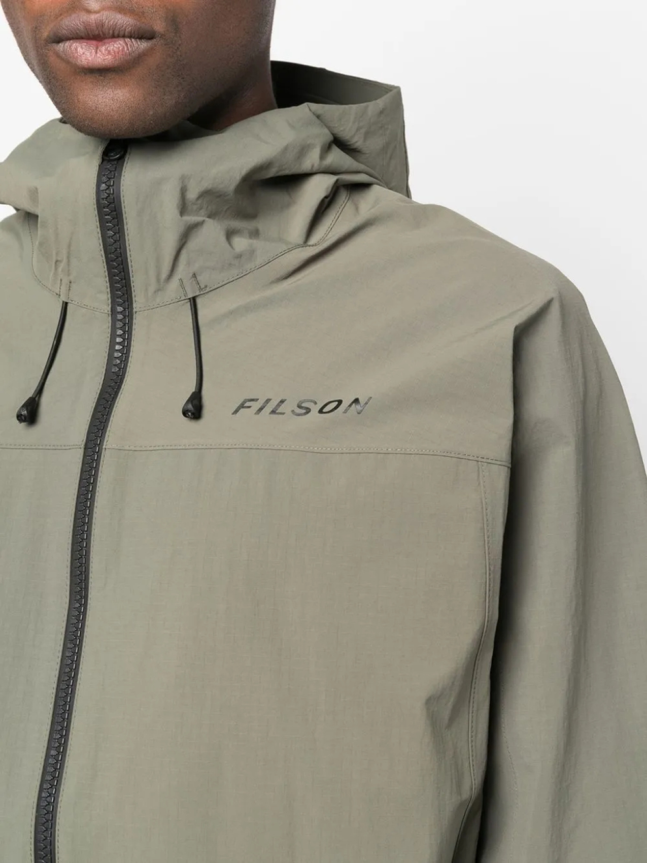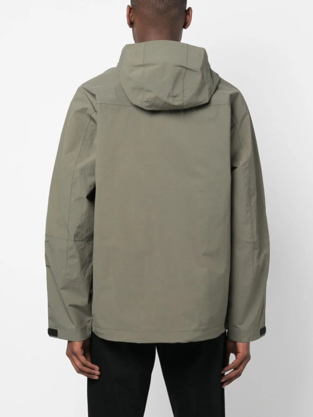 Хаки, переработанный нейлон, водонепроницаемый, манжеты на липучках, затягивающийся на шнурок капюшон, принт с логотипом на груди и два кармана на молнии по бокам. Ответственный выбор: Этот товар как минимум на 50% состоит из переработанных или повторно использованных материалов. Мы рекомендуем стирать вещи из переработанных синтетических тканей в специальном мешке, чтобы микропластик не попадал в сточные воды.