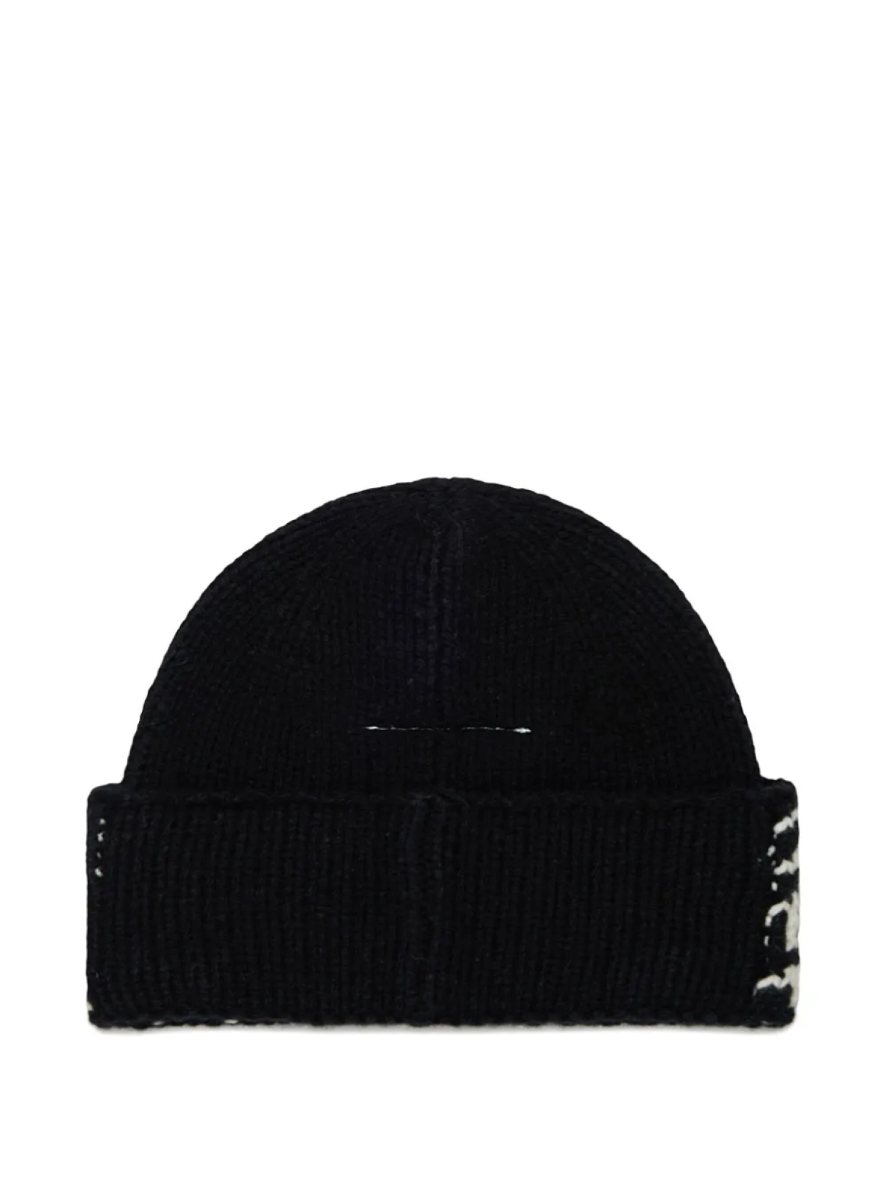 MM6 Maison Margiela Kids шапка бини вязки интарсия, черный