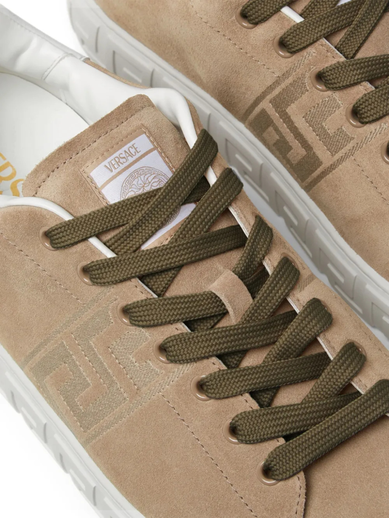 Versace кроссовки с вышивкой Greca, коричневый