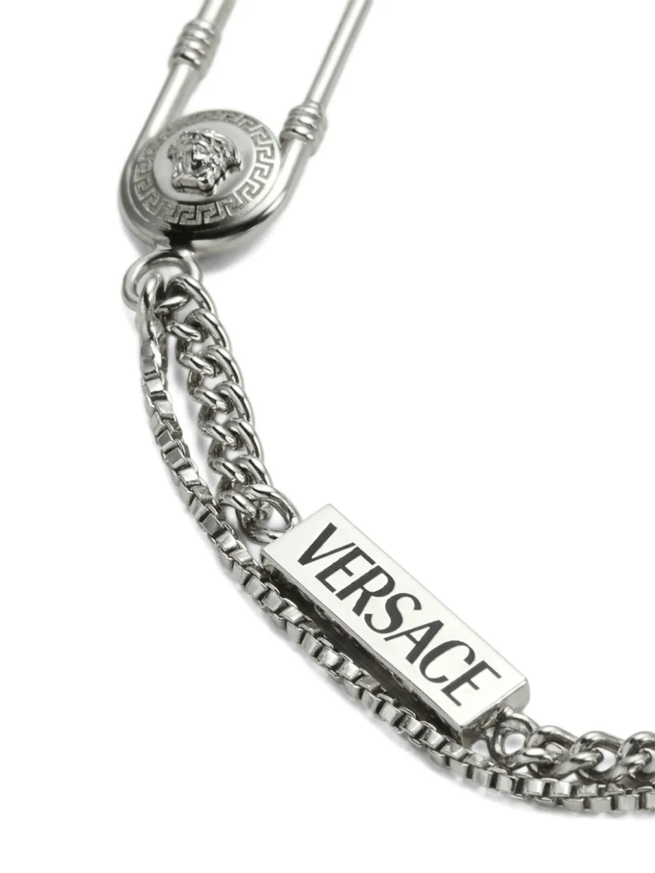 Versace браслет с гравированным логотипом, серебряный