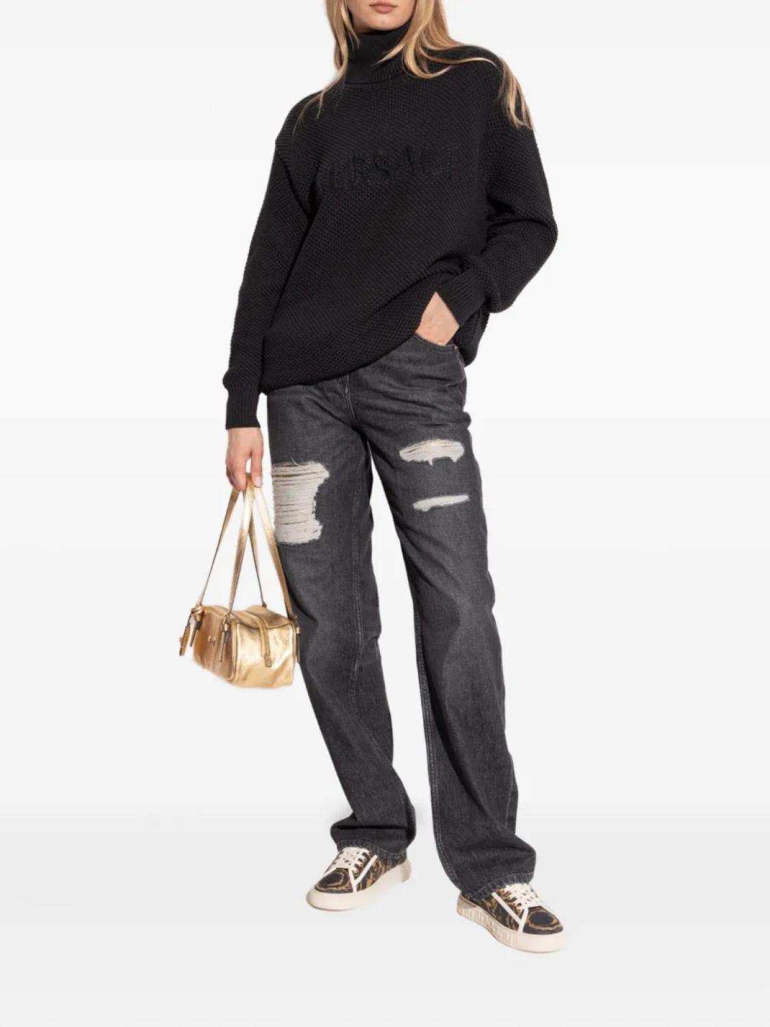 Фактурный джемпер с высоким воротом Versace, черный