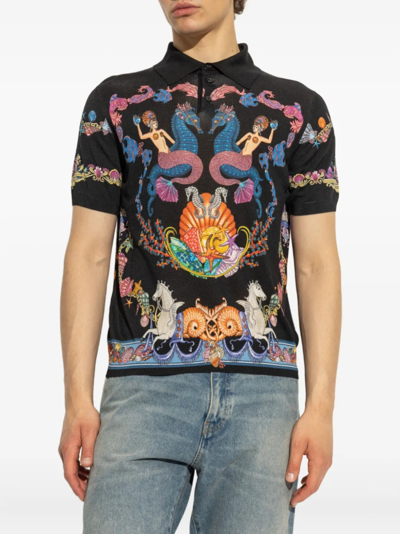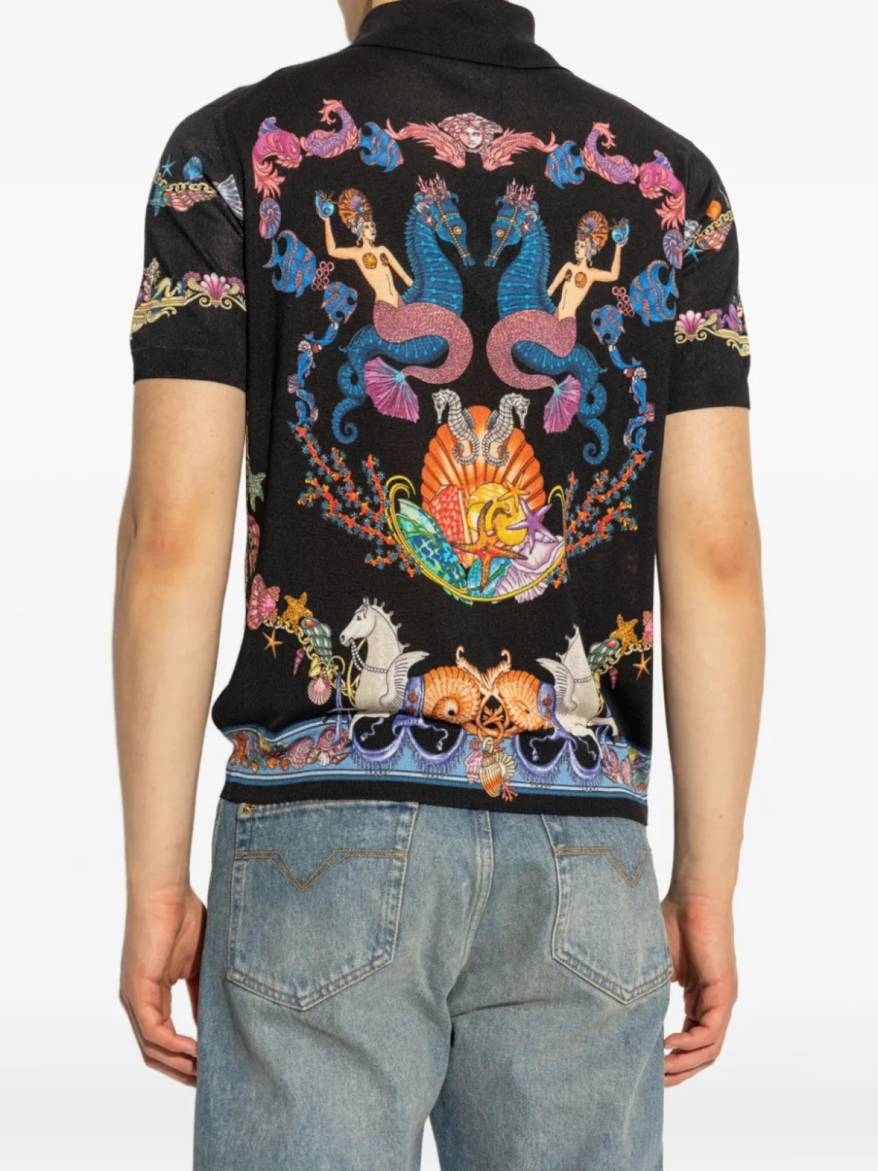 Трикотажная рубашка-поло Coral Theatre Versace, черный 98 417₽