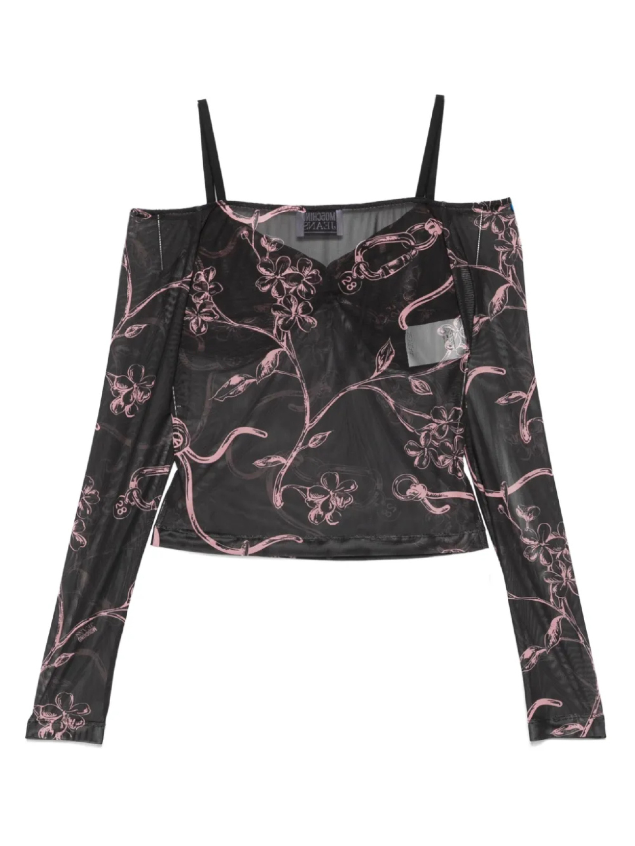 Блузка из тюля с цветочным принтом MOSCHINO JEANS, черный