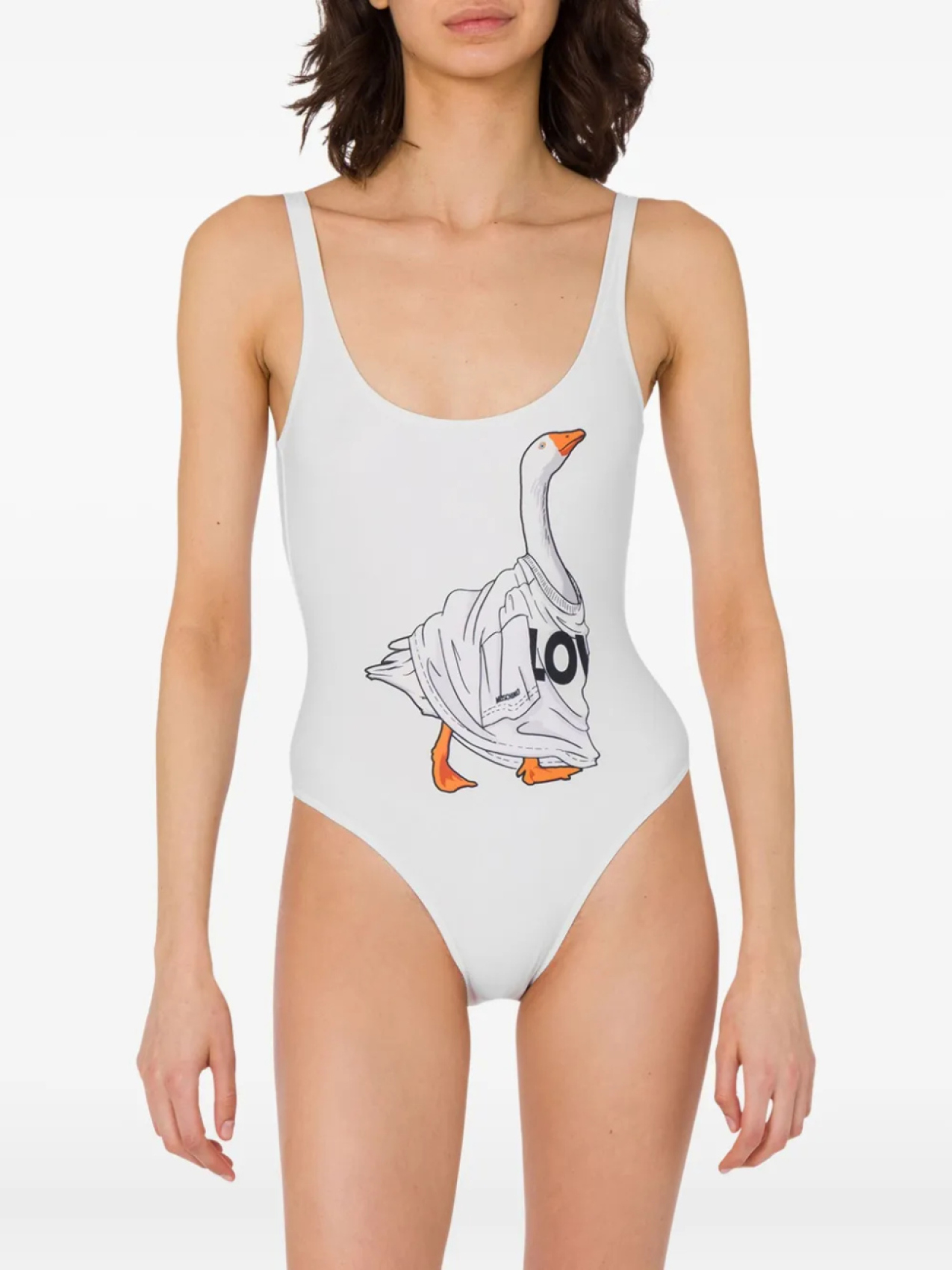 Moschino купальник Goose с графичным принтом, белый