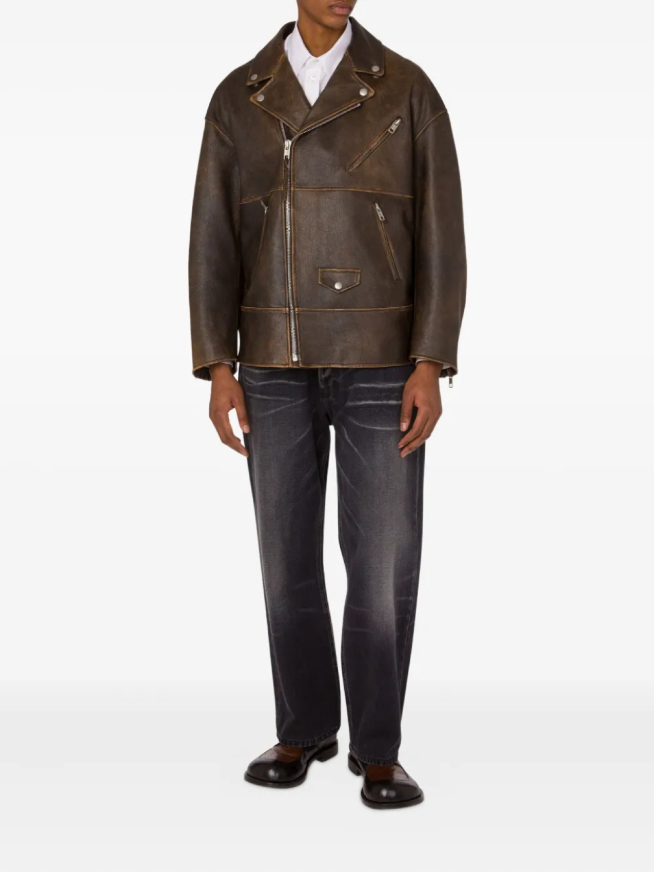 Кожаная куртка на молнии Moschino, коричневый 184 304₽