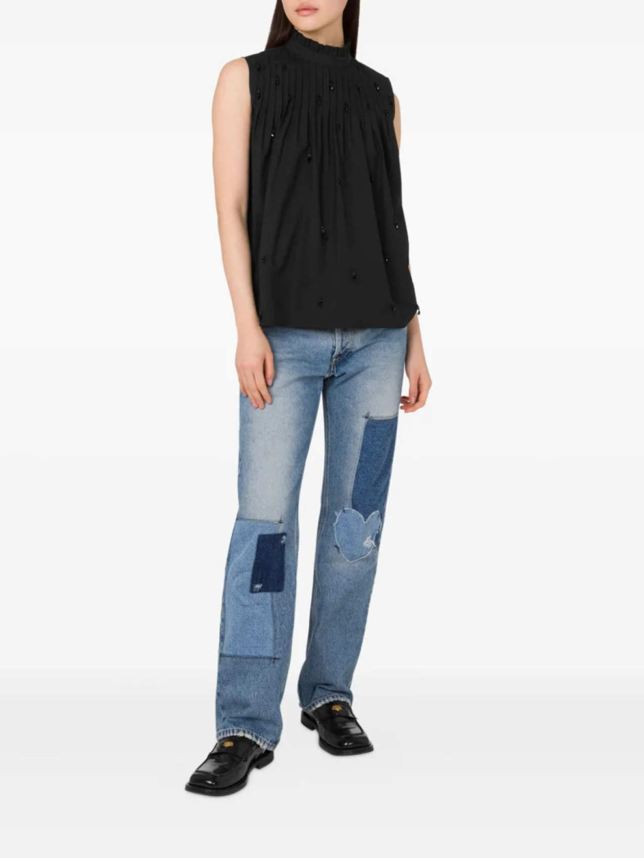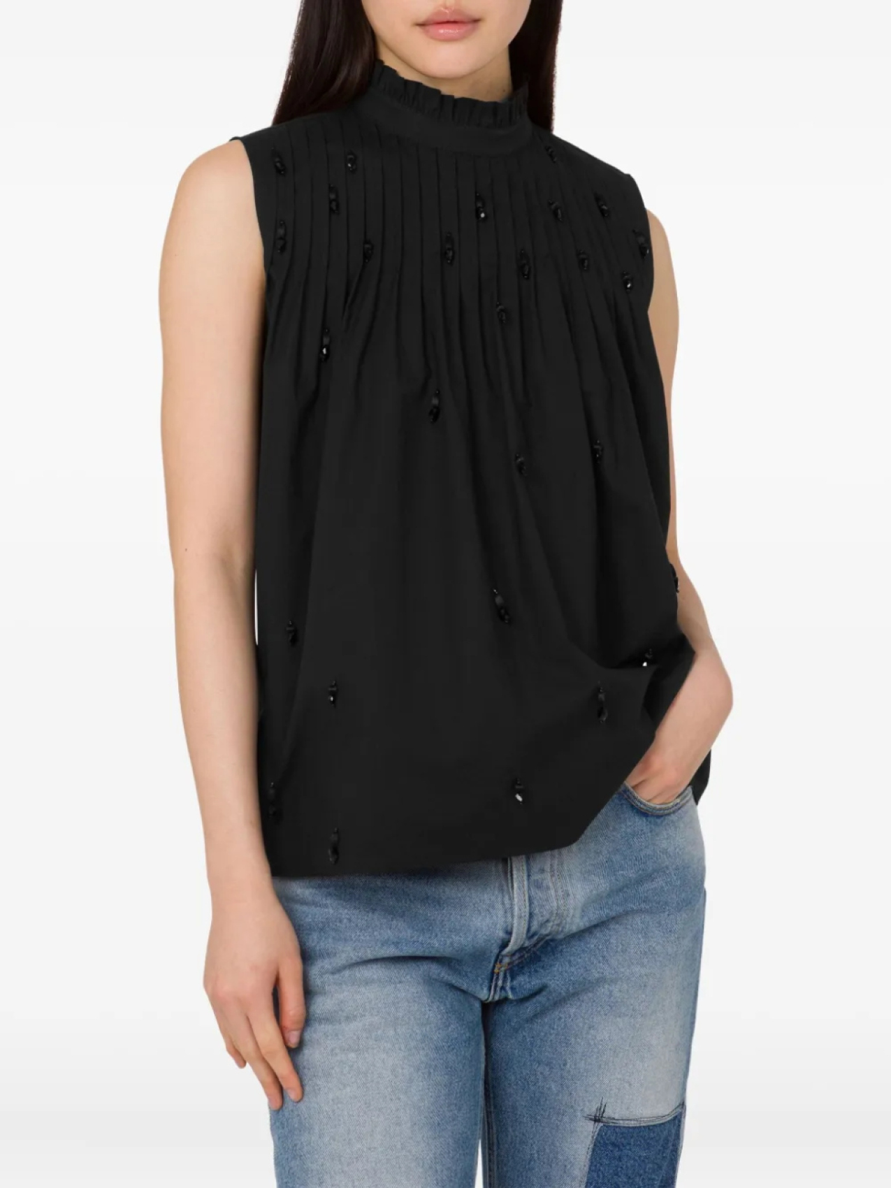 Moschino поплиновый топ с вышивкой, черный 54 071₽