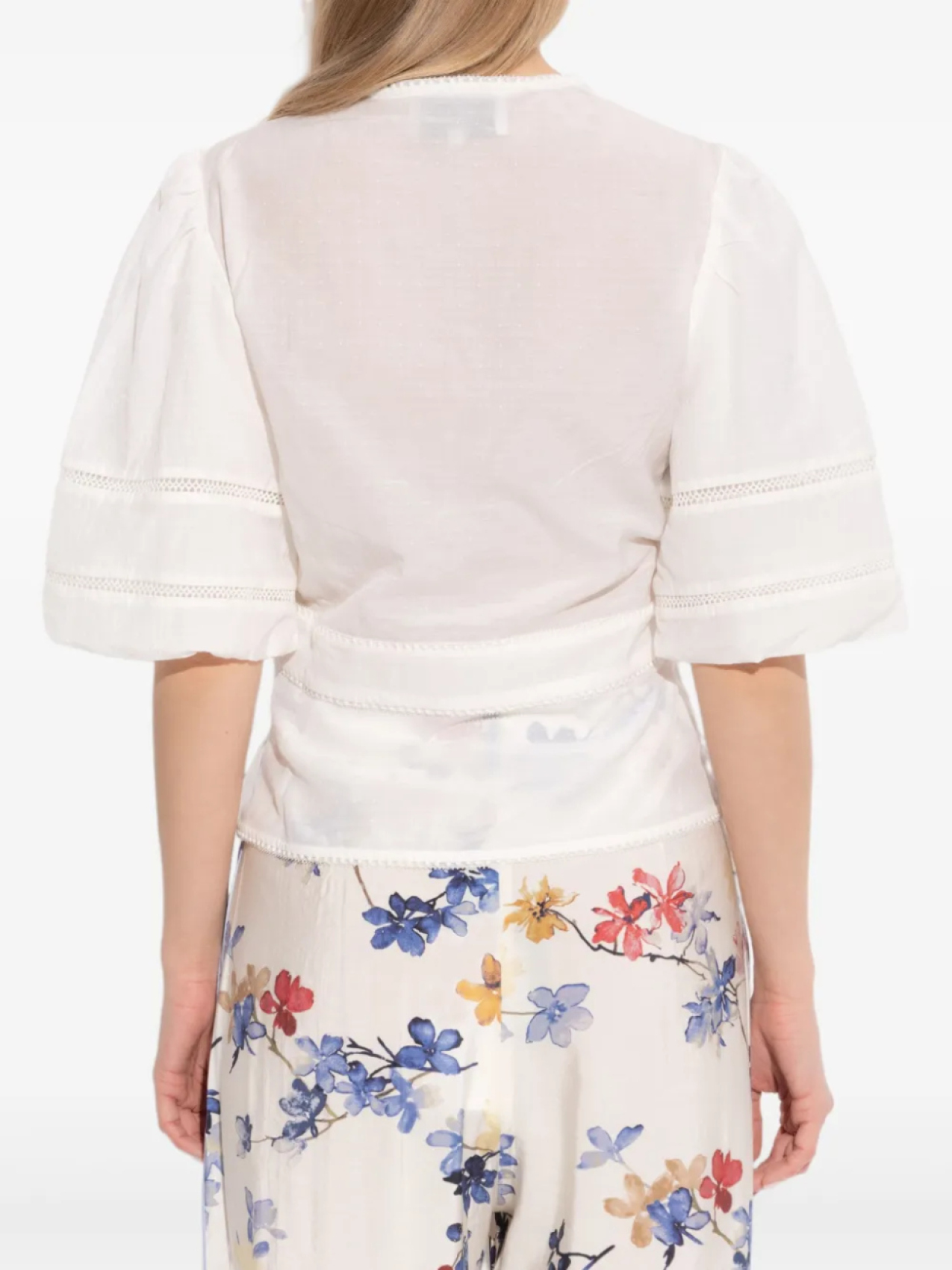 Блузка с вышитыми рукавами-фонариками MUNTHE, белый
