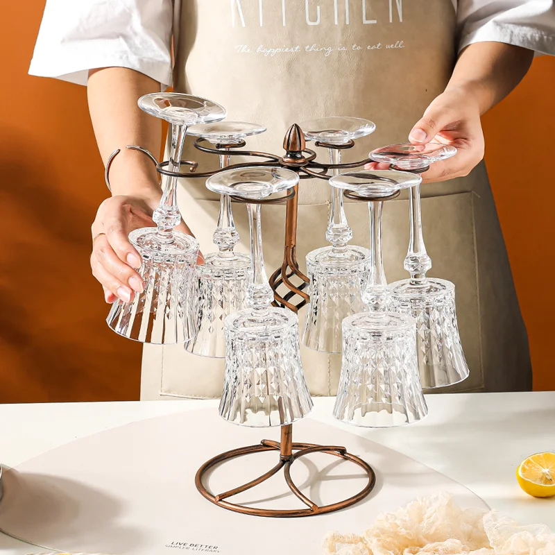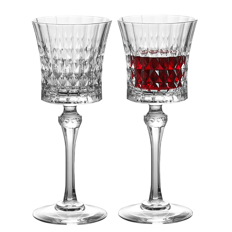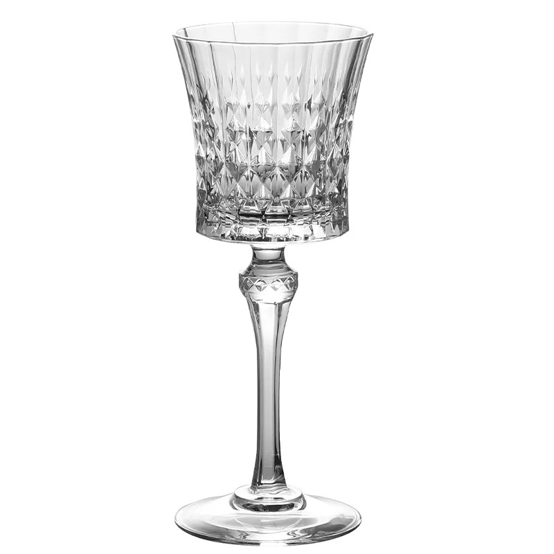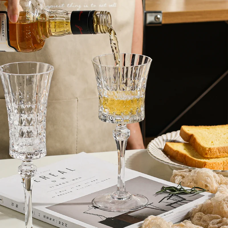 Фужер имеет элегантный дизайн с граненым узором на чаше, что придает ему изысканный вид.