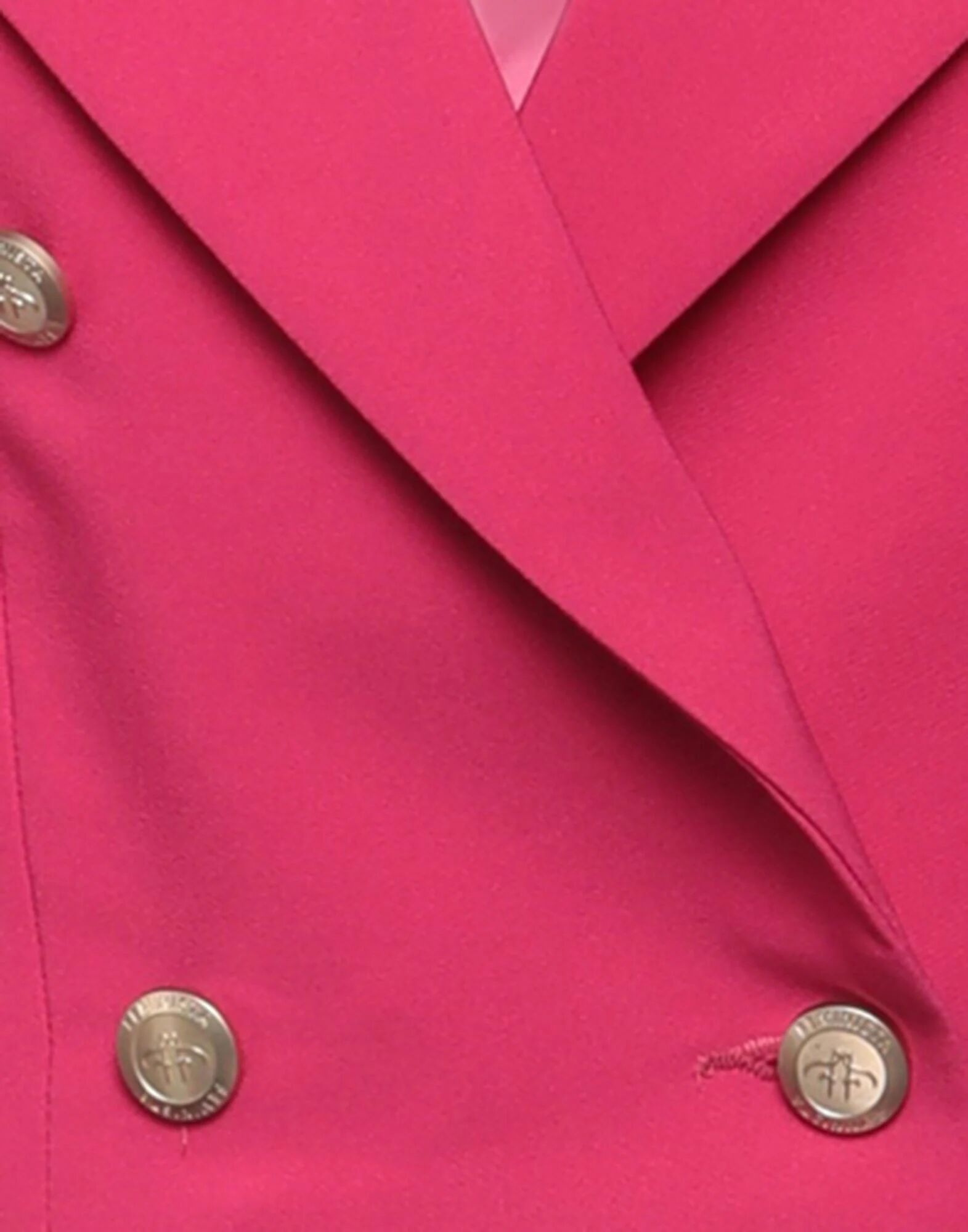 Креп, без аппликаций, однотонный, воротник с лацканами, двубортный, длинные рукава, полностью на подкладке, застежка на пуговицы, без карманов, эластичный, двубортный пиджак