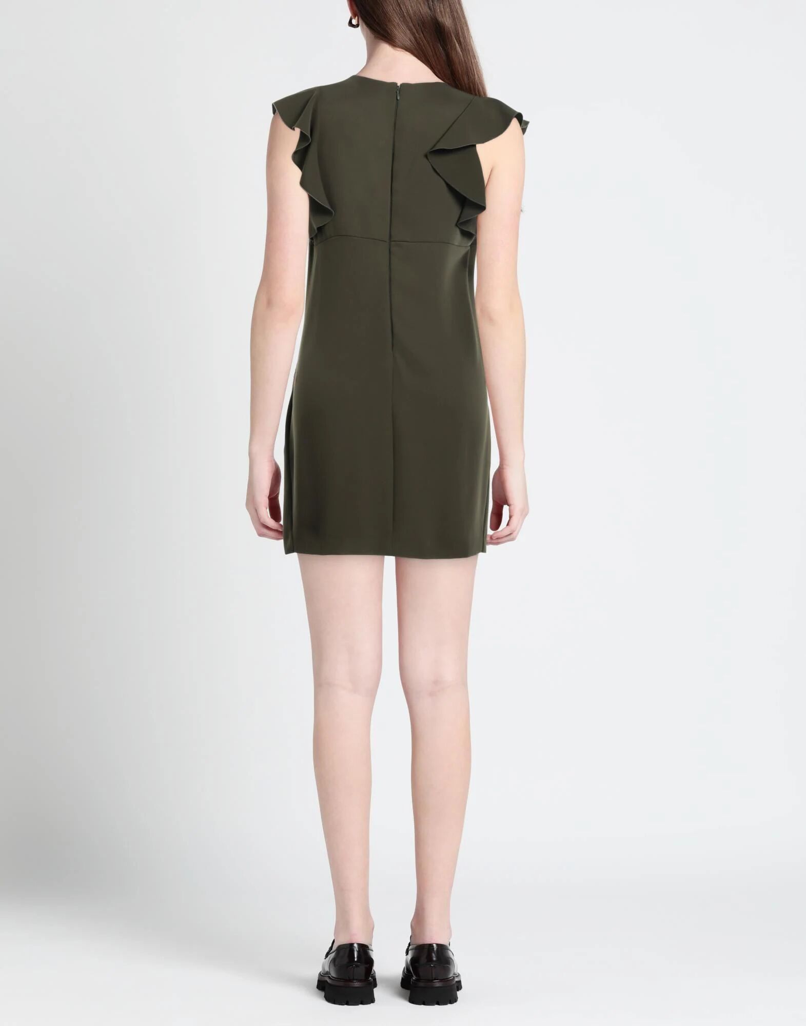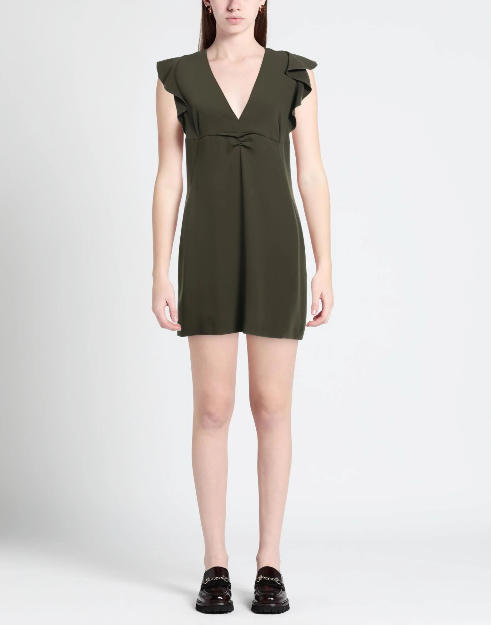 Креп, без аппликаций, однотонный, V-образный вырез, короткие рукава, без подкладки, застежка-молния, без карманов, трапециевидный фасон, маленький размер