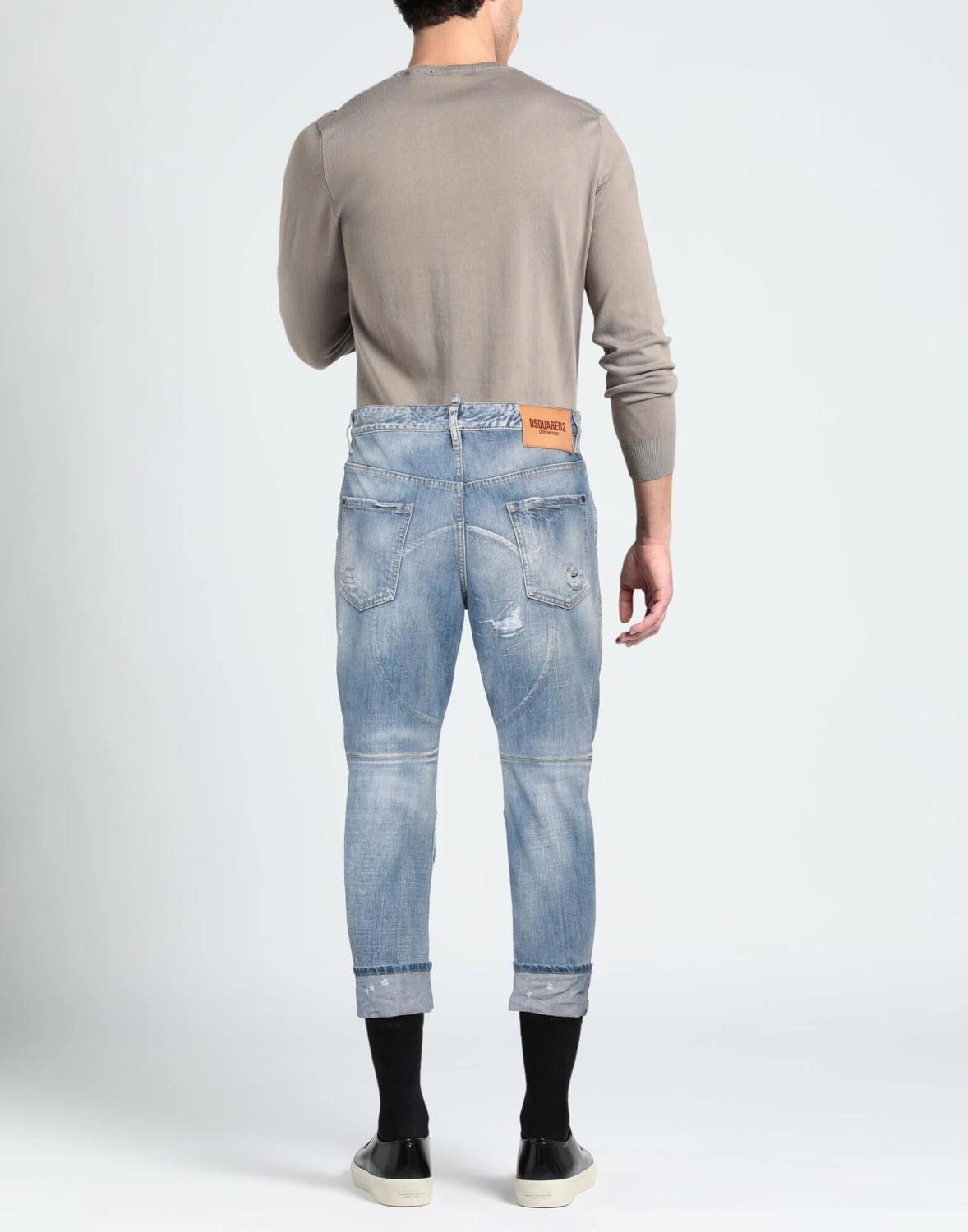 Деним, потертый, логотип бренда, однотонный, светлая стирка, высокая талия, эластичная талия, свободный крой, потайные застежки на пуговицы, подвернутый край, множество карманов, машинная стирка или химчистка, не отбеливать, не сушить в стиральной машине, укороченные, зауженные джинсы