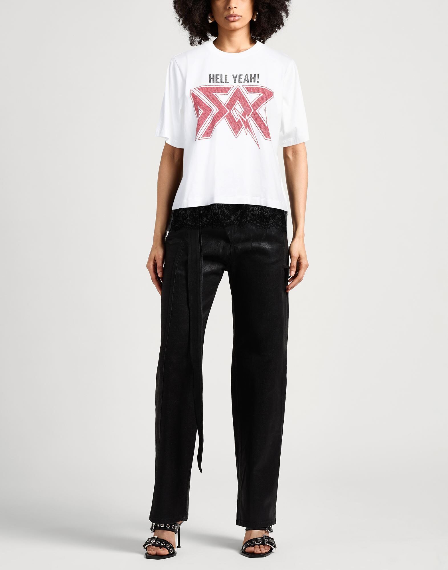 Футболка с принтом, трикотаж, кружево, однотонный цвет с принтом, логотип бренда, круглый вырез горловины, короткие рукава, машинная стирка, не отбеливать, не сушить в стиральной машине