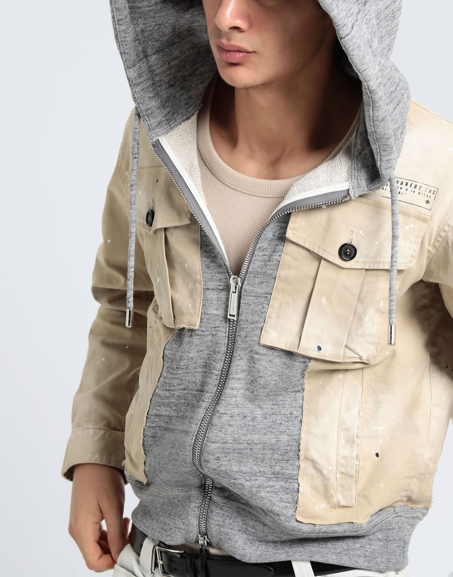 Толстовка флис, габардин, логотип бренда, двухцветная, воротник с капюшоном, однобортная, длинные рукава, подкладка из французского трикотажа, застежка-молния, множество карманов, эластичная, содержит нетекстильные части животного происхождения, универсальная верхняя одежда