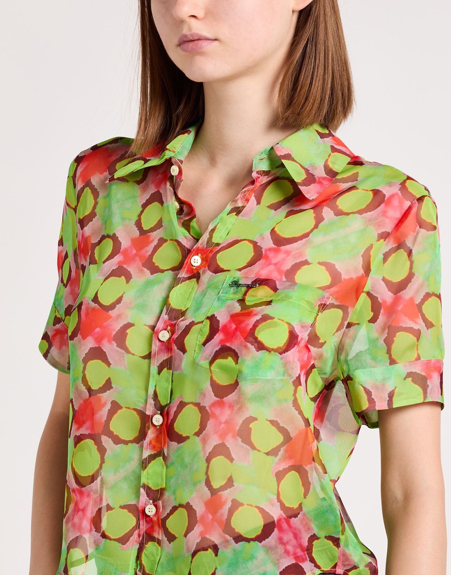 Вуаль, логотип бренда, многоцветный, классический воротник, короткие рукава, застежка на пуговицы, один нагрудный карман, ручная стирка или химчистка, не отбеливать, нельзя сушить в стиральной машине, рубашка