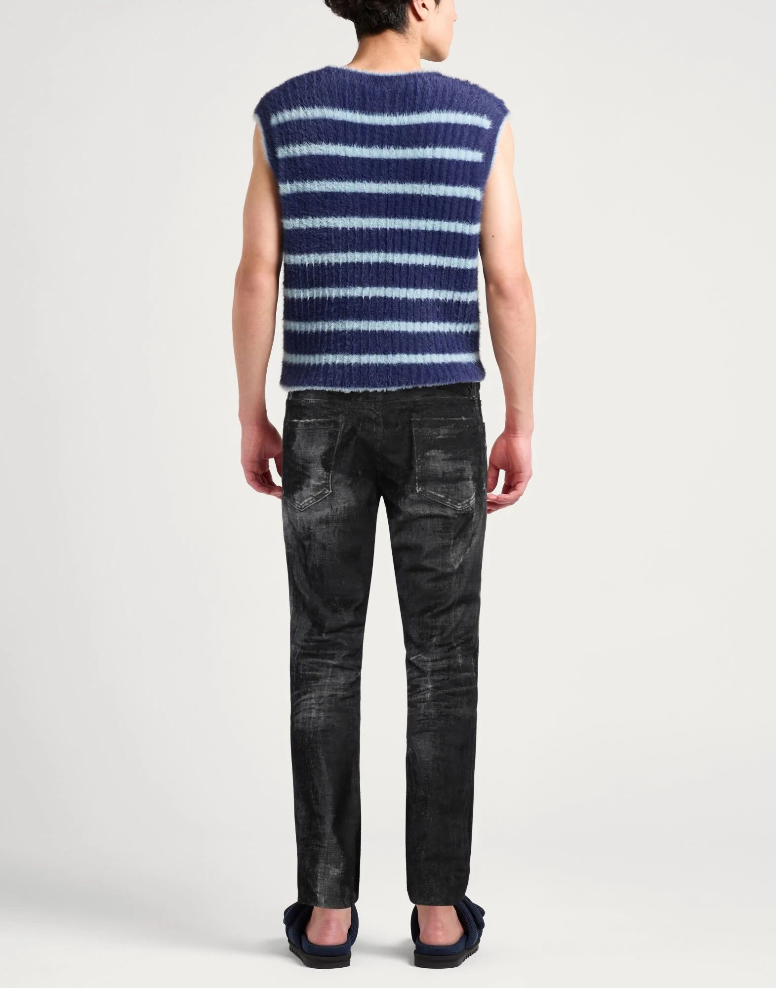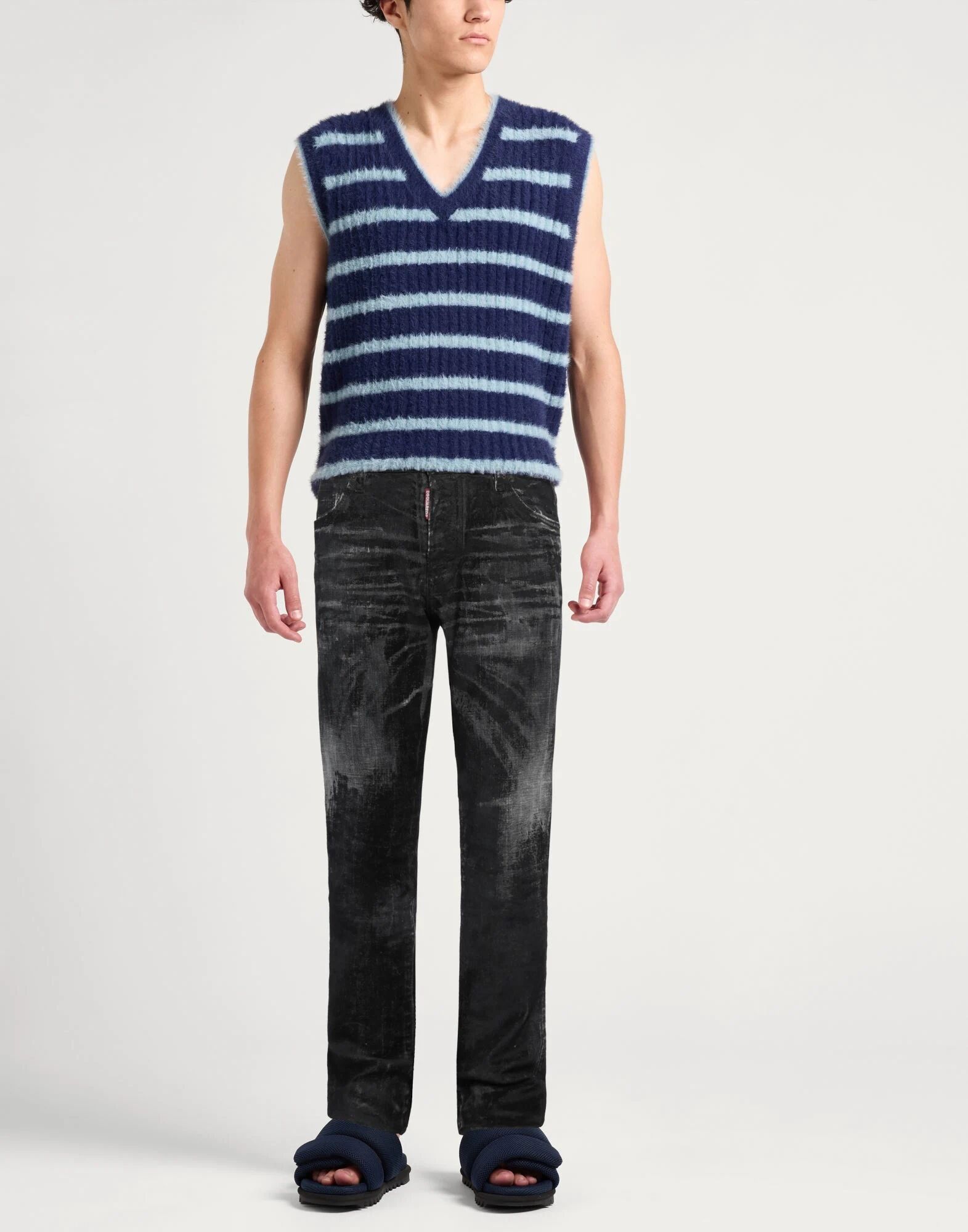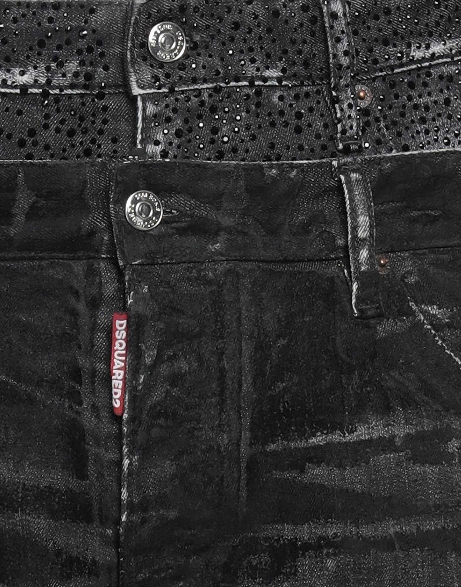 Джинсы прямого кроя, деним, флокированный, кристаллы, кожаная отделка, логотип бренда, двухцветный, цветная стирка, высокая талия, классический крой, застежка-молния, застежка на пуговицы, множество карманов, эластичный, не подвергать химической чистке, не отбеливать, не сушить в стиральной машине, не гладить, содержит нетекстильные части животного происхождения
