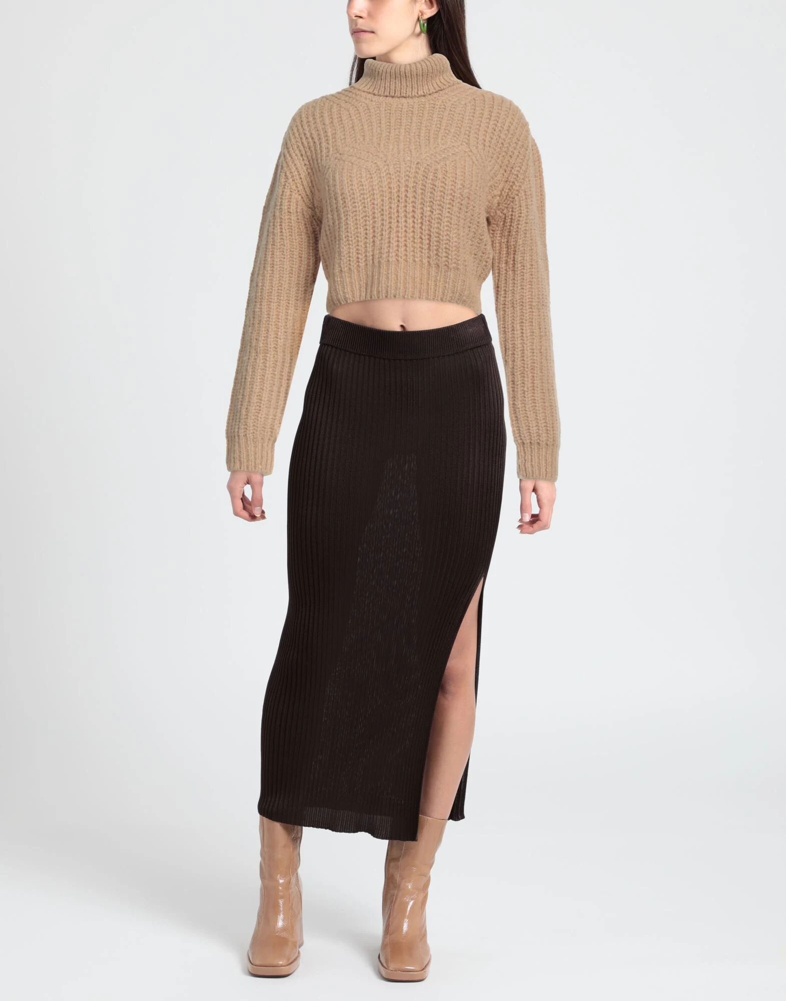Трикотаж, средней плотности трикотаж, логотип бренда, укороченный, однотонный, водолазка, длинные рукава, без карманов, содержит нетекстильные части животного происхождения, не подвергать химической чистке, не отбеливать, не сушить в стиральной машине