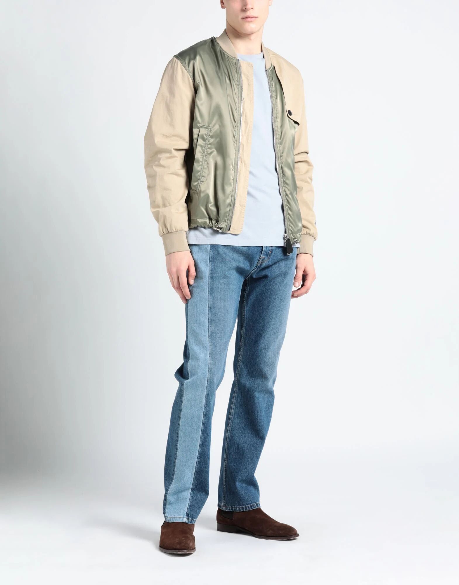 Полотняное переплетение, техническая ткань, без аппликаций, двухцветная, круглый воротник, однобортная модель, длинные рукава, полностью на подкладке, застежка-молния, множество карманов, эластичная
