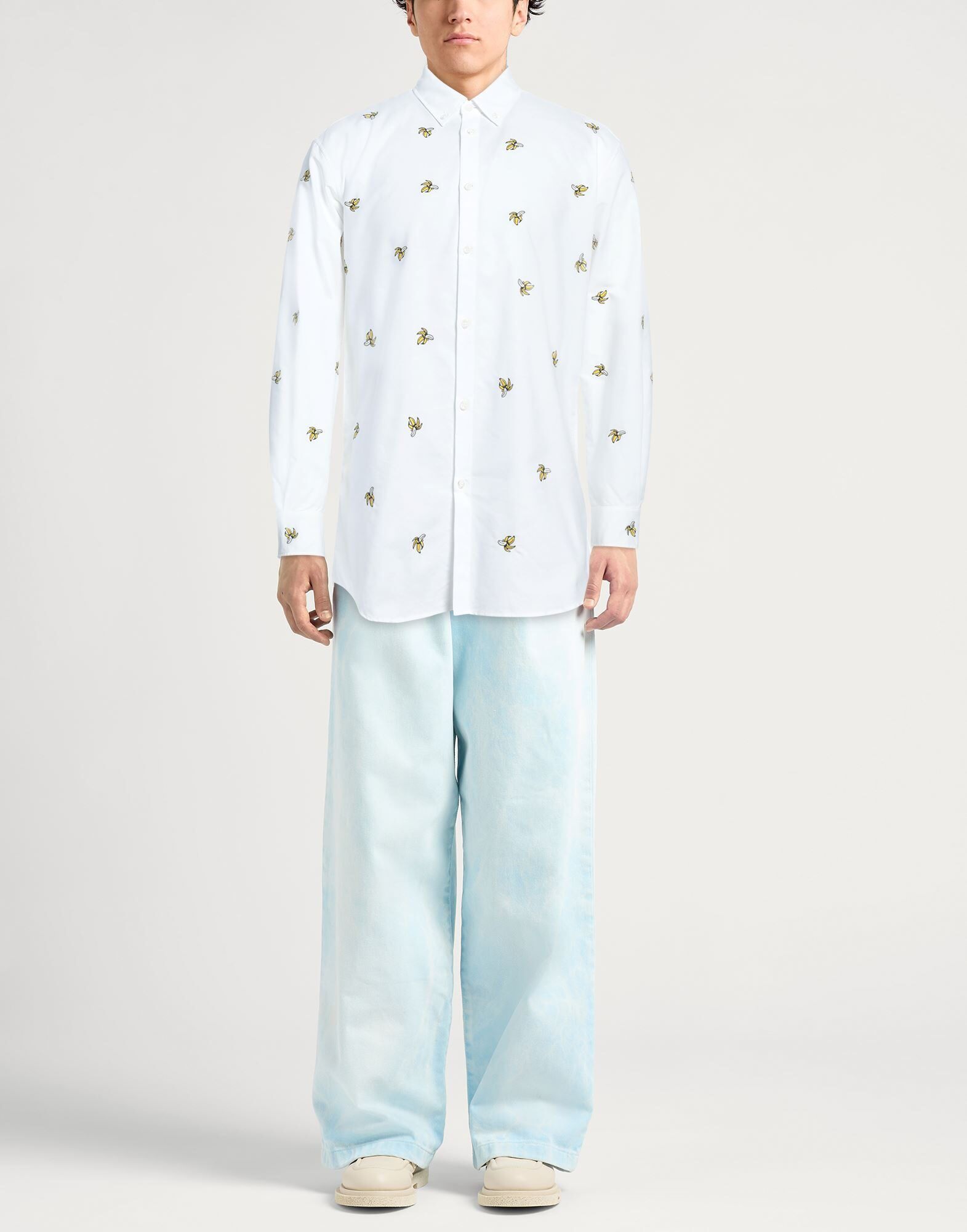 Рубашка прямого кроя, тканая, однотонная с аппликациями, вышитая, воротник на пуговицах, длинные рукава, манжеты на пуговицах, застежка на пуговицы, машинная стирка или химчистка, не отбеливать, не сушить в стиральной машине