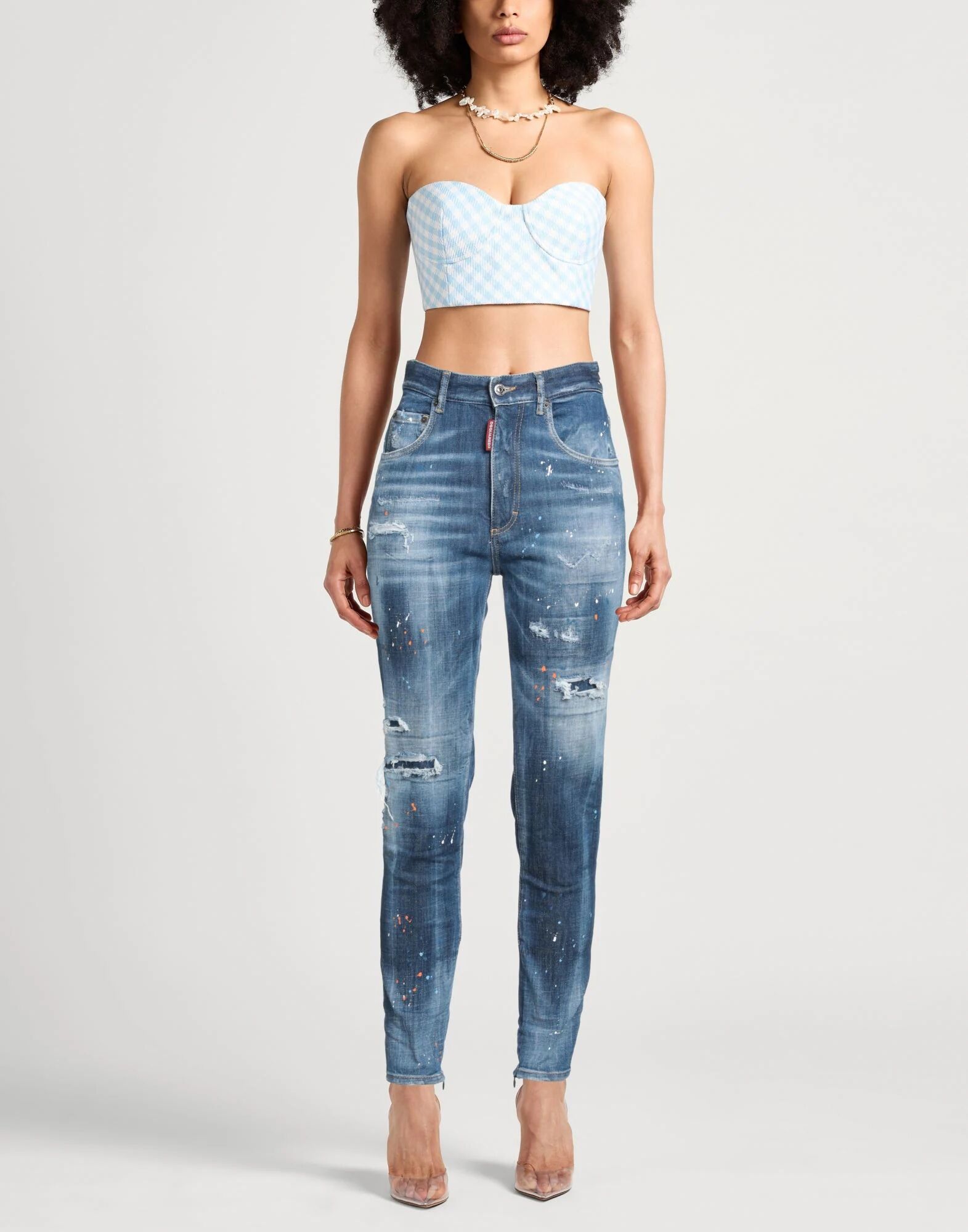 Джинсы mom, деним, однотонный цвет, логотип бренда, средняя стирка, высокая талия, шлевки для ремня, облегающий крой, 1 пуговица, множество карманов, эластичные, машинная стирка, не отбеливать, не сушить в стиральной машине