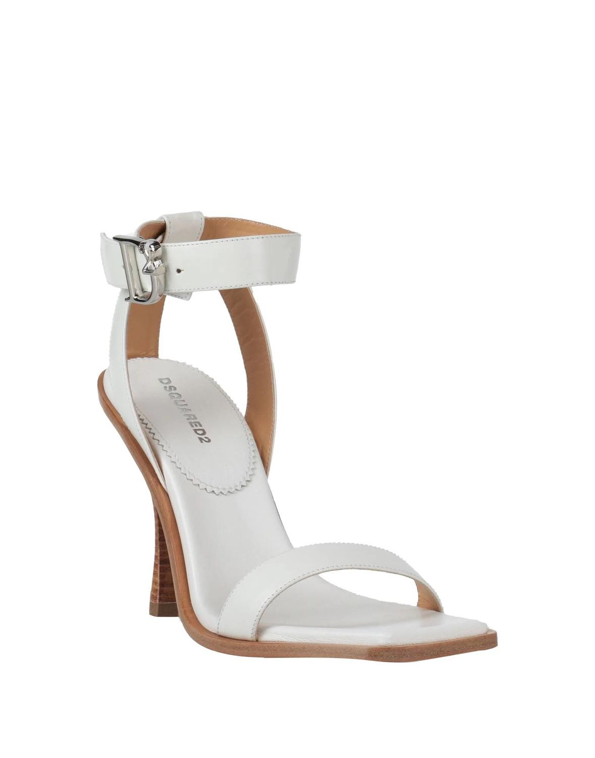 Кожа, логотип бренда, однотонный цвет, кожаная подкладка, застежка на обхватывающие ремешки, квадратный носок, каблук-катушка, кожаная подошва, содержит нетекстильные части животного происхождения, сандалии с ремешком на щиколотке