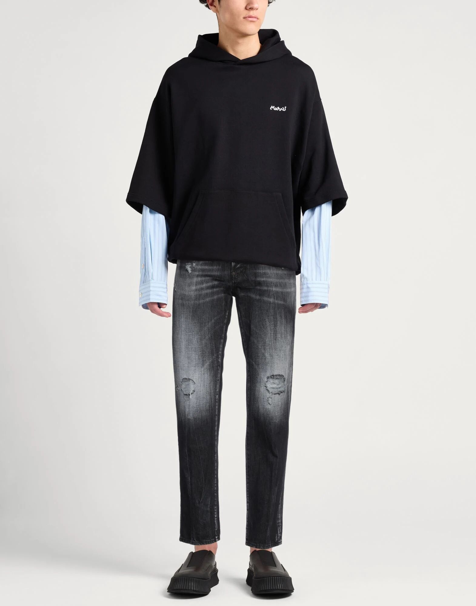 Зауженные джинсы, деним, выцветшие, потертые, однотонные, с логотипом бренда, цветная стирка, средняя посадка, классический крой, застежка на пуговицы, множество карманов, машинная стирка или химчистка, не отбеливать, нельзя сушить в стиральной машине, содержит нетекстильные части животного происхождения