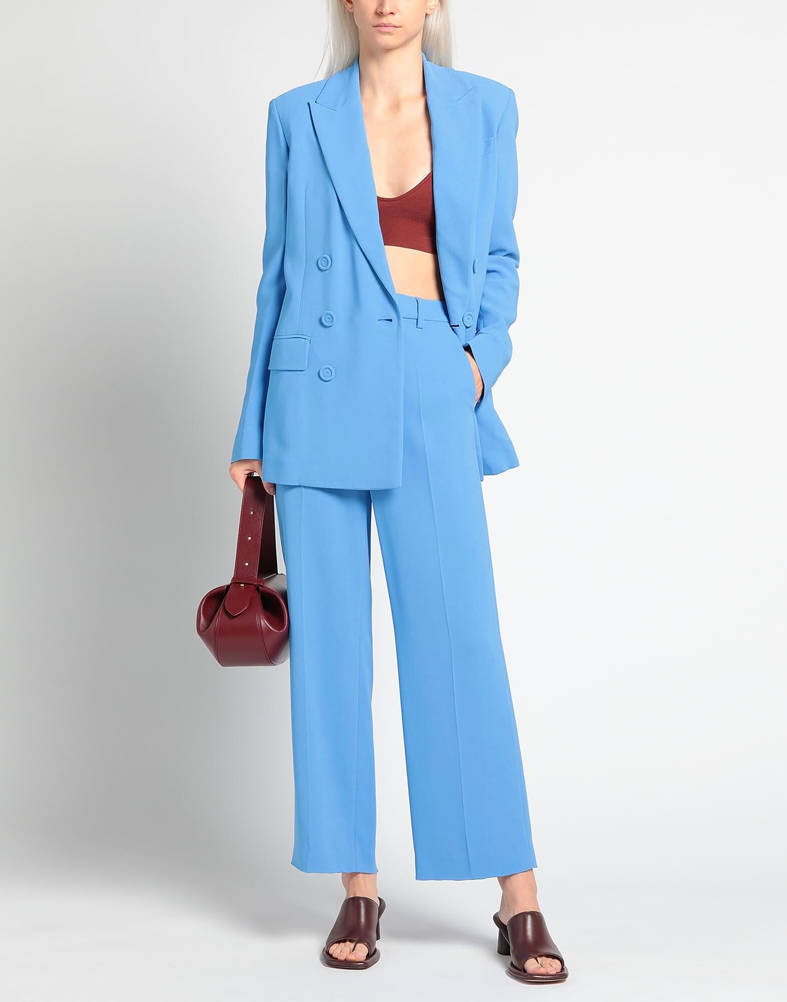 Креп, без аппликаций, однотонный, воротник с лацканами, двубортный, длинные рукава, частично на подкладке, застежка на пуговицы, множество карманов, эластичный, модель брюк