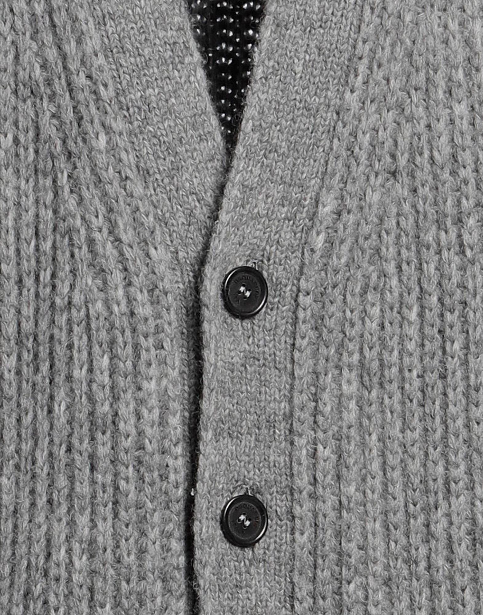 Трикотаж, меланж, плотный трикотаж, без аппликаций, меланж, V-образный вырез, длинные рукава, застежка на пуговицы, множество карманов, свободный покрой